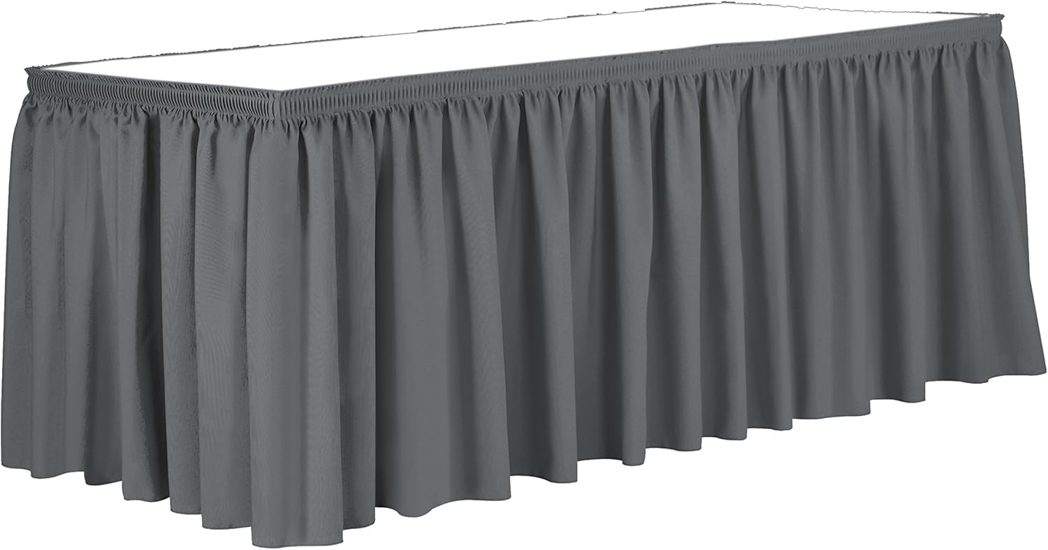Ultimate Textile Pleat Polyester Fabric Table Skirt - Machine Washable Flame Resistant with Clips for Events, Weddings & Trade Shows, Cut & Sewn in Paterson, NJ - Charcoal, 7' Shirred Pleat