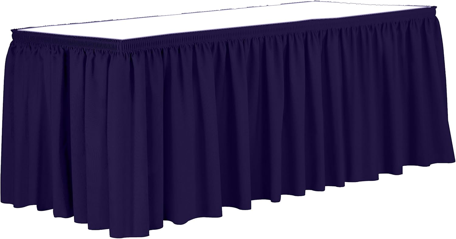 Ultimate Textile Pleat Polyester Fabric Table Skirt - Machine Washable Flame Resistant with Clips for Events, Weddings & Trade Shows, Cut & Sewn in Paterson, NJ - Purple, 7' Shirred Pleat