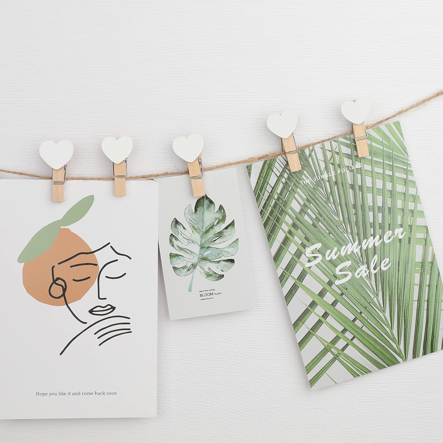100 Pcs White Mini Wooden Heart Clothespins 3.5 cm with Spring Wooden Photo Paper Pegs Craft Clips for Wedding Party Decor with 100 Feet Jute Twine