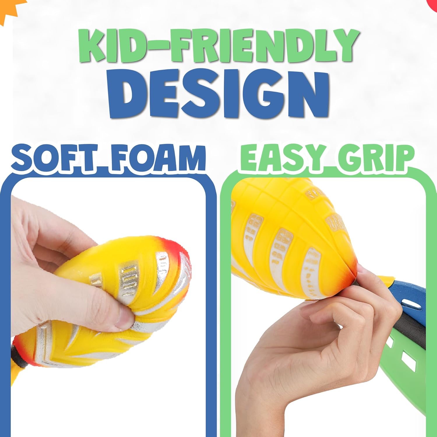 - Kid-Friendly Design: Crafted with soft, cushiony foam, these footballs prioritize kid safety, allowing for worry-free play without the risk of injuries