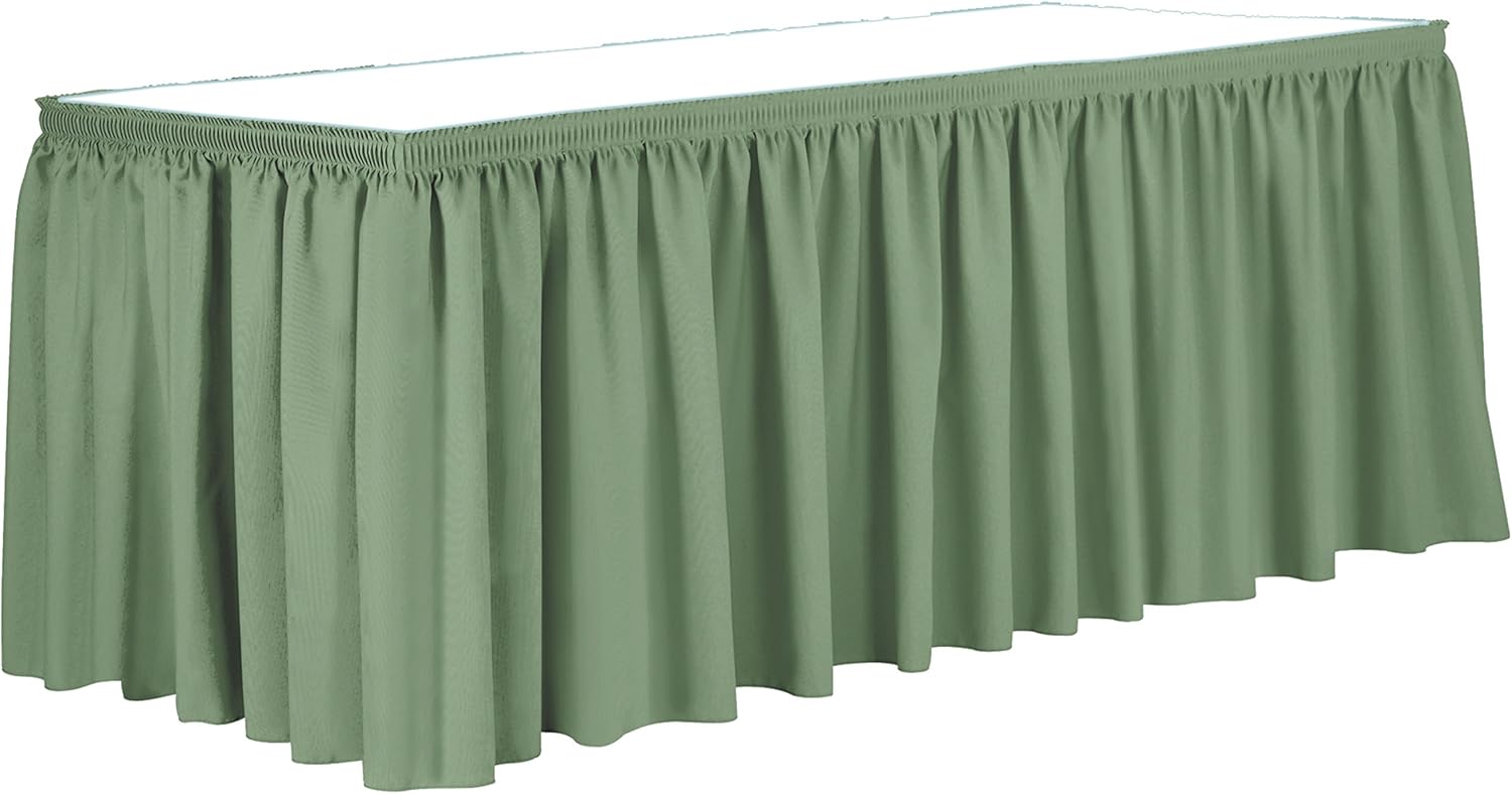Ultimate Textile Pleat Polyester Fabric Table Skirt - Machine Washable Flame Resistant with Clips for Events, Weddings & Trade Shows, Cut & Sewn in Paterson, NJ - Sage, 21' Shirred Pleat