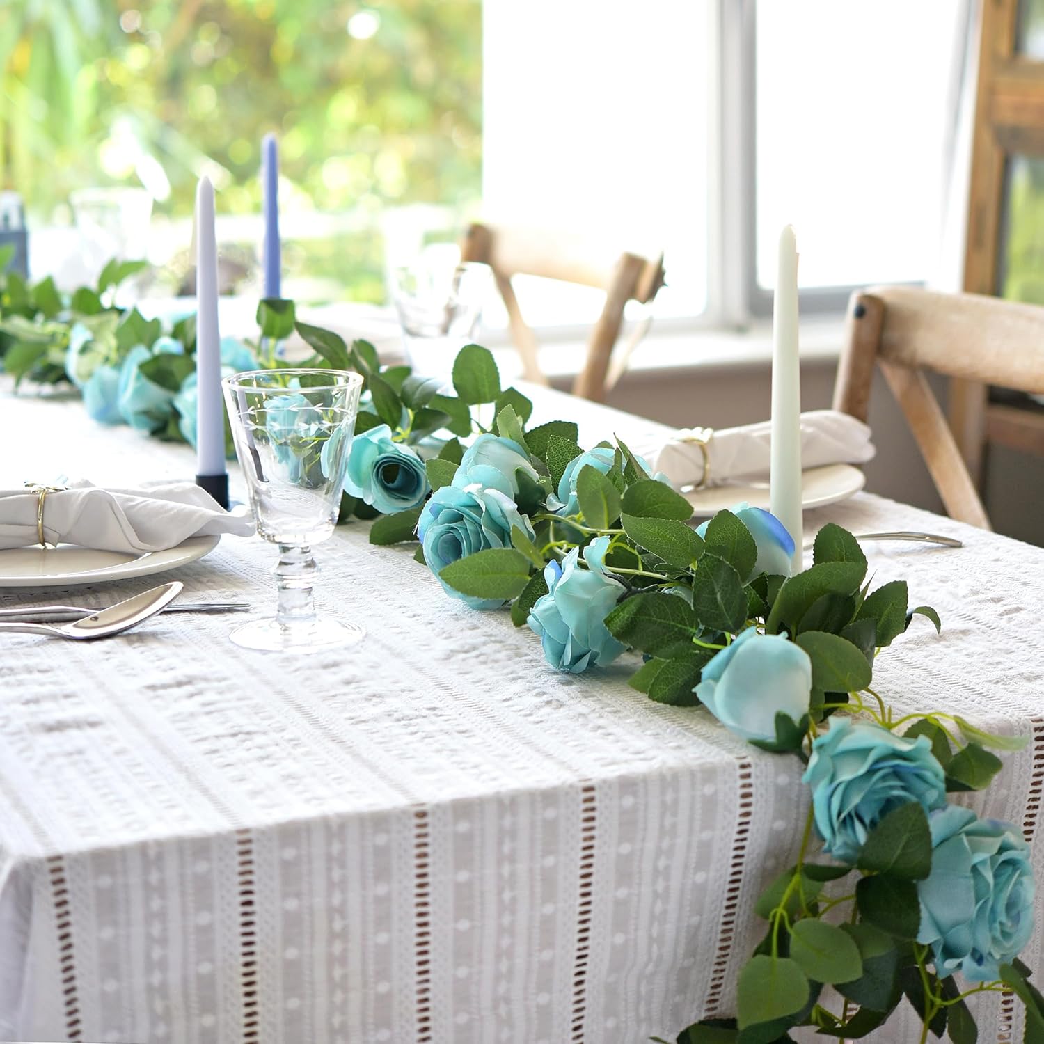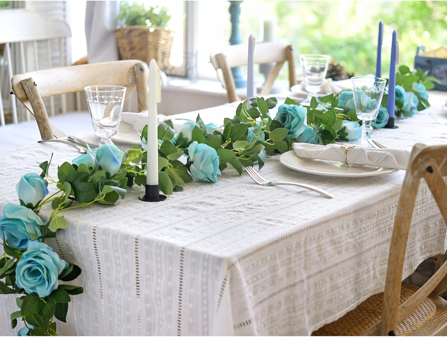 FiveSeasonStuff 29 Ft 4 Pack Rose Silk Flower Garland Artificial Flowers Decoration Hanging Floral Décor for Wedding Baby Shower Birthday Party Garden (Sky Blue)