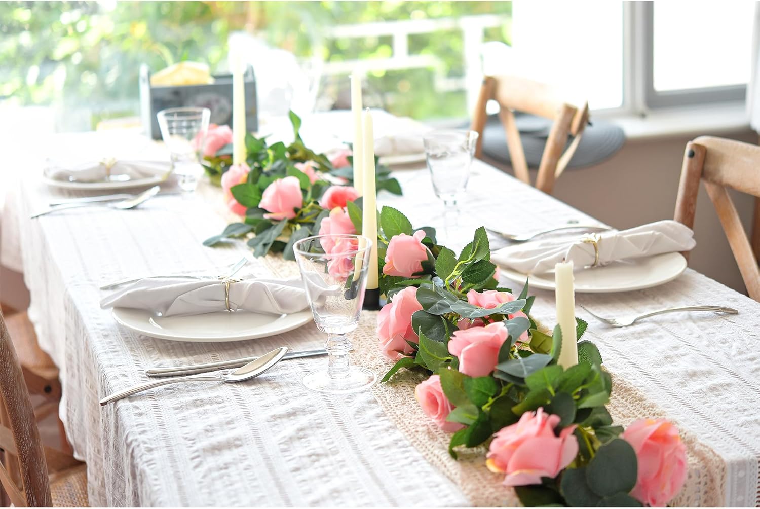 - Each set includes 4 individual artificial rose garlands, each approximately 7ft long, totaling 28ft when combined. Each strand is bundled separately and must be fluffed and joined to achieve full 28 ft length;