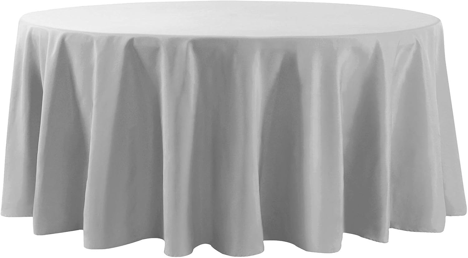 132 inch Round Tablecloth Washable Polyester Table Cloth Decorative Table Cover for Wedding Party Dining Banquet(132 inch,Silver)