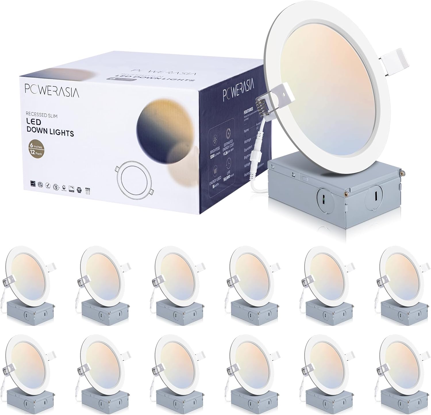 - 💡【High Brightness】 POWERASIA 90+CRI technology brings true color rendering to your house. The 6-inch slim lights use the new generation of LED chips with higher lumens and lower power. 1200LM 15 Watts, which equals to 220W incandescent lamp, saving you up to 88% in energy costs.