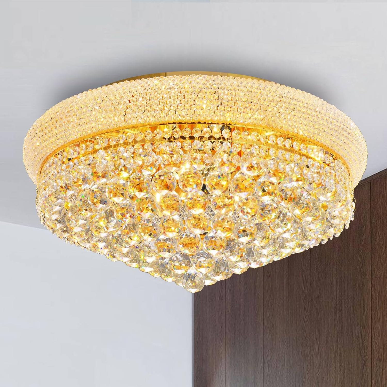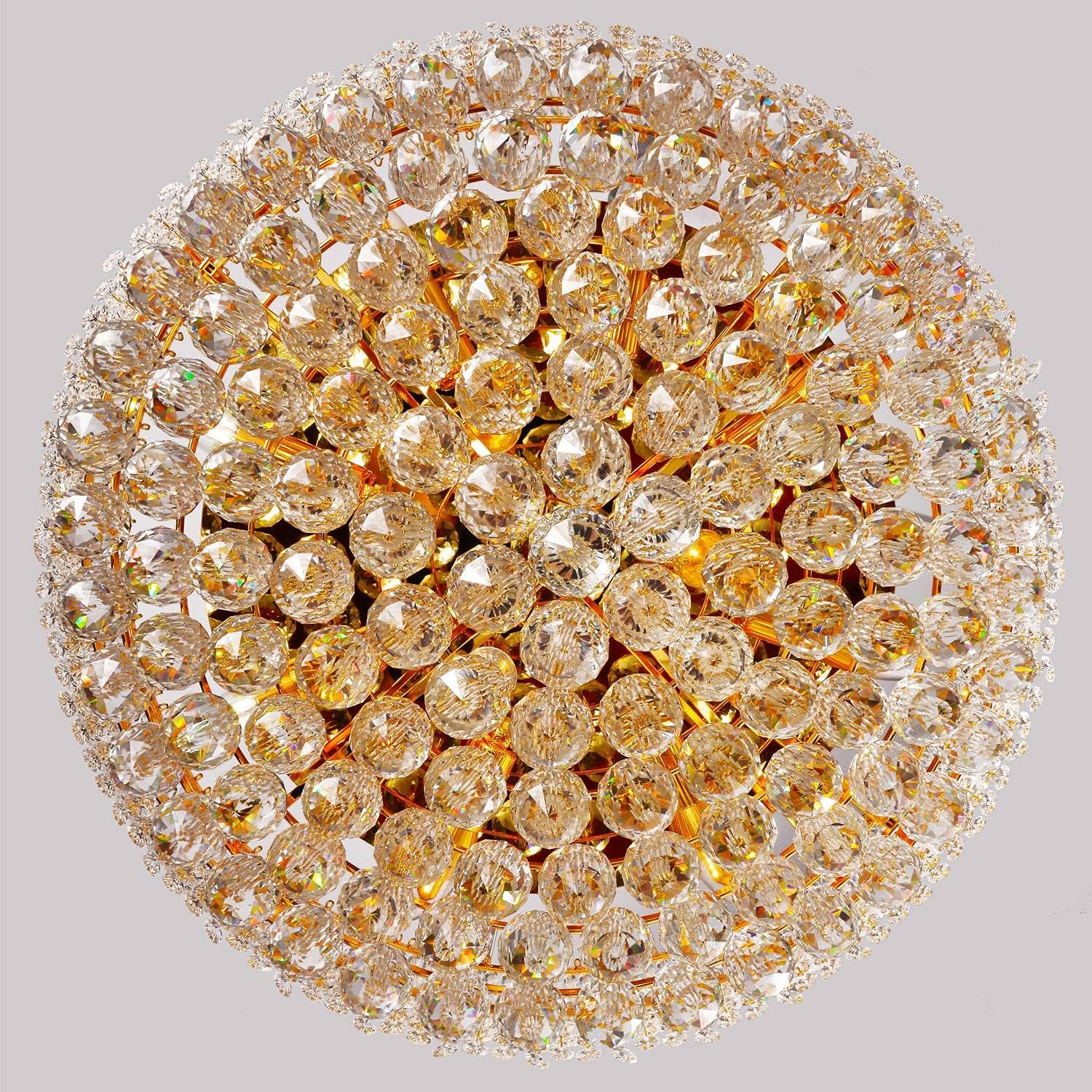 - This K9 Empire golden crystal chandelier ceiling Light is a dazzling cascade of light and elegance, adding a touch of luxury to any room. It is far more beautiful than pictured, with its sparkling K9 crystal-ball pendants that catch and reflect the light, creating a mesmerizing display.