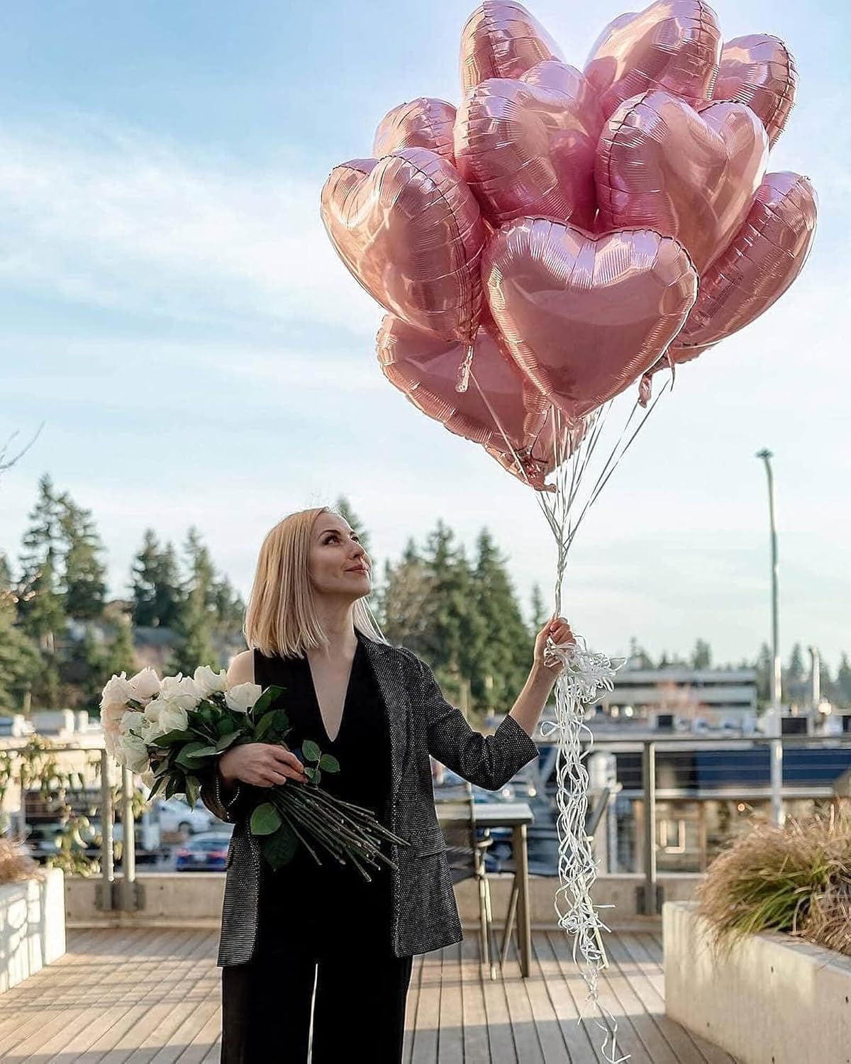 - Package Included:10Pcs 18 inch Rose Gold Heart Balloons (uninflated) + 1pcs Straw +1pcs 32 foot Ribbon Roll