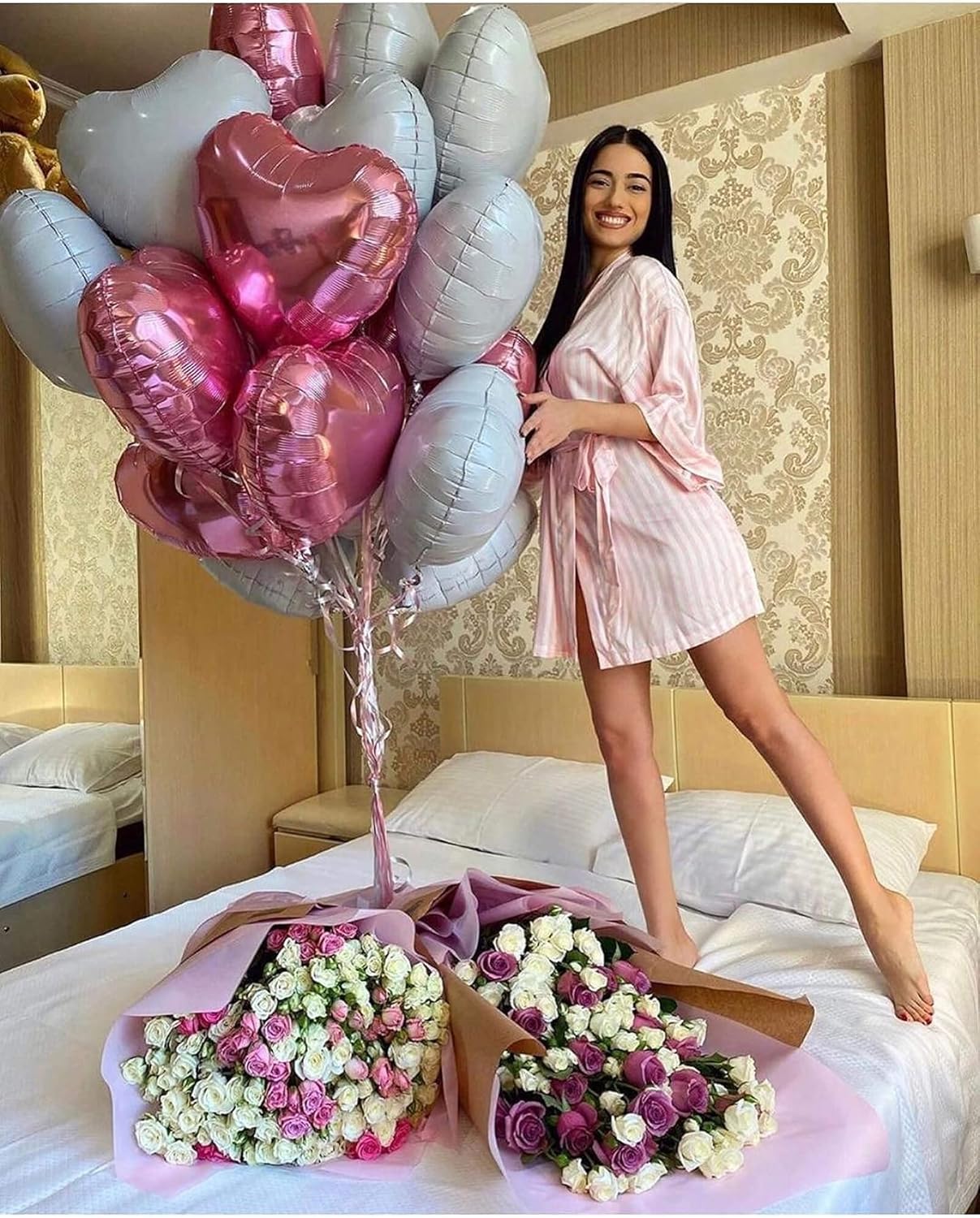 - Package Included:10Pcs 18 inch Grey White Heart Balloons (uninflated) + 1pcs Straw +1pcs 32 foot Ribbon Roll