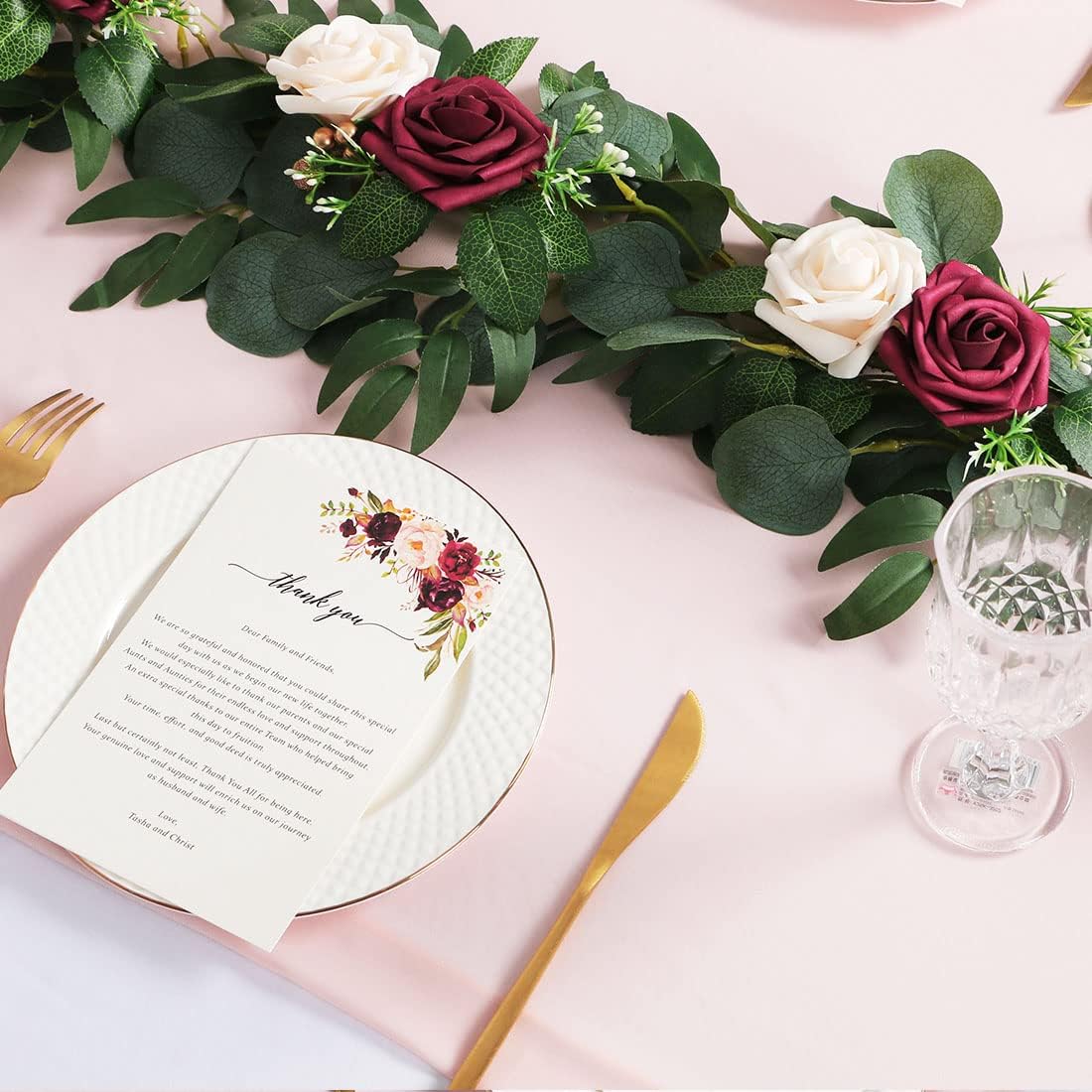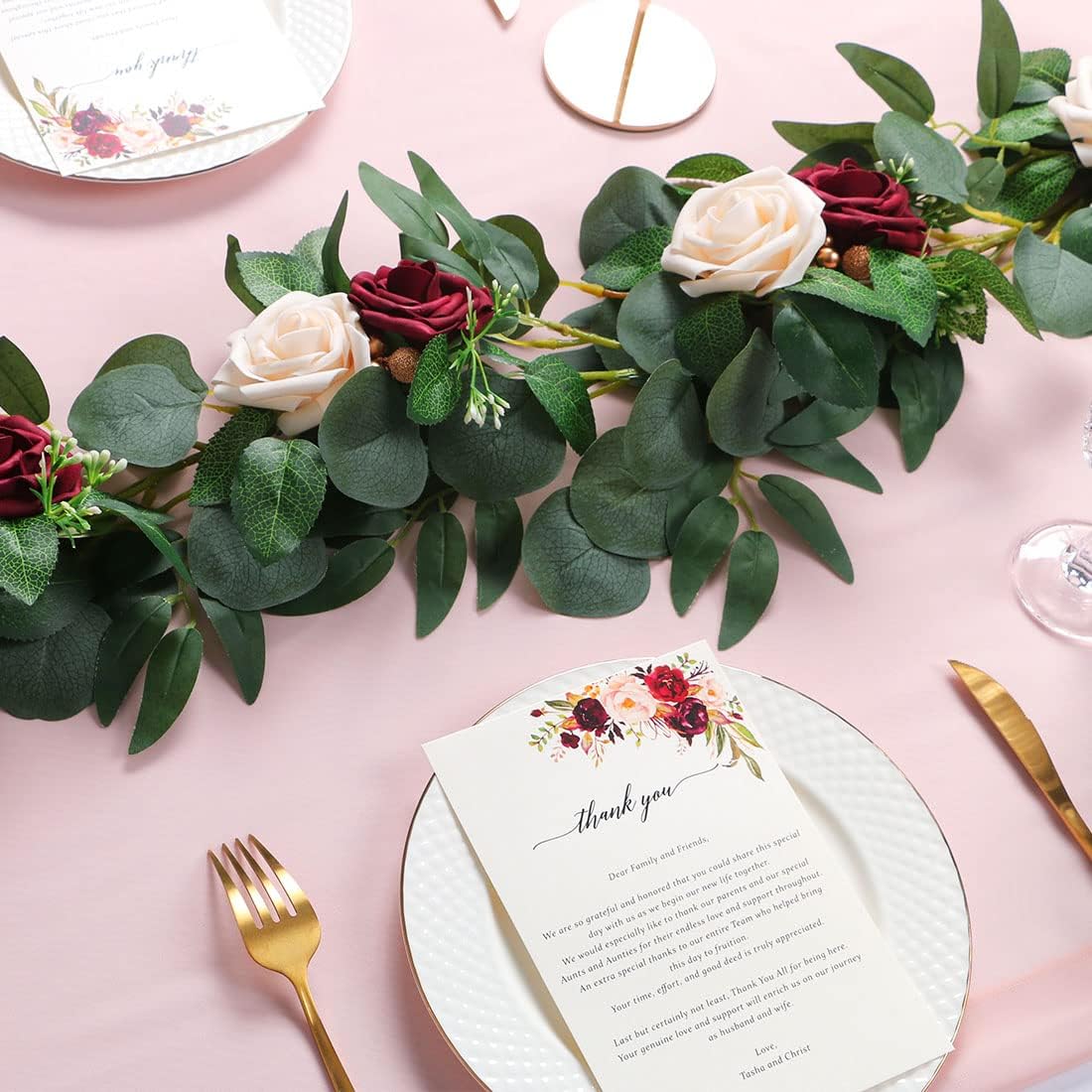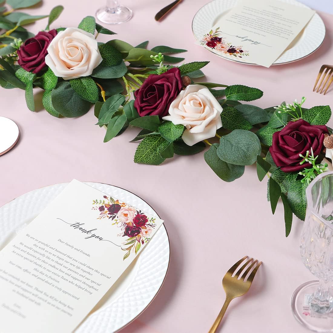 ponatia 6.5FT Handcrafted Artificial Rose Flower Garland, Eucalyptus Greenery Garland for Wedding Ceremony Garlands Backdrop Arch Flowers, Reception Table Decorations (Burgundy & Ivory Cream)