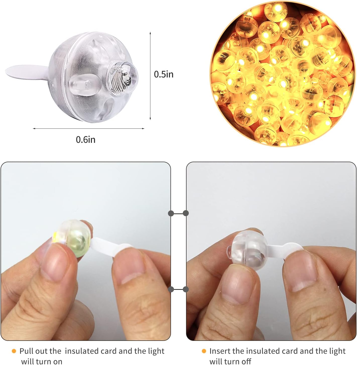 - Easy Operation: These lights are easy to use; Simply pull out the insulation film before placing them into balloons, paper lanterns, vases, bottles, or any centerpieces you desire