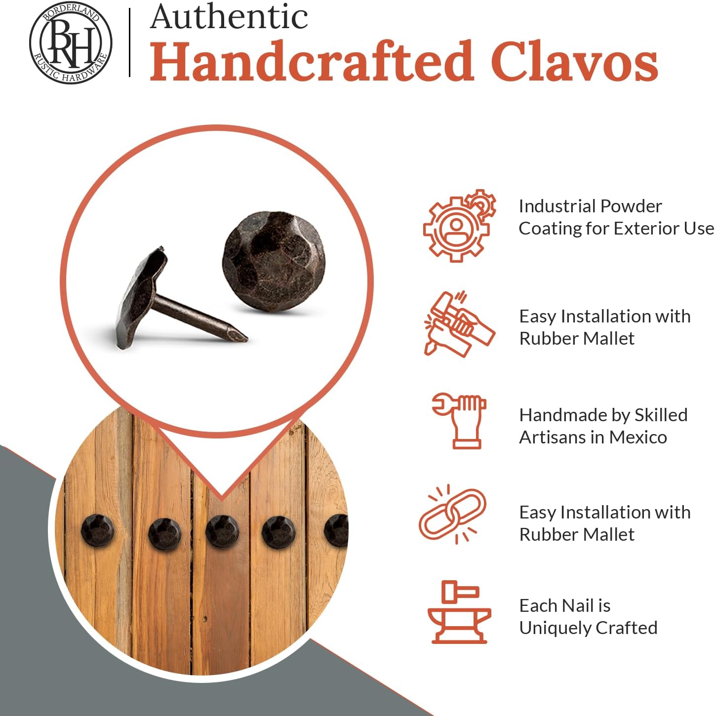 10 Pack 0.75" Round Head Iron Clavos Decorative Nails – Sealed Unfinished – Handmade Rustic Round Fasteners for Farmhouse Shutters, Faux Wood, Barn Doors, Shutters, Gates – Ornamental Wood Accent