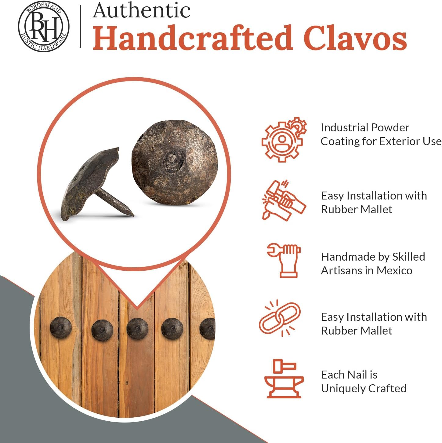 10 Pack 1.25" Round Head Iron Clavos Decorative Nails – Unfinished – Handmade Rustic Round Fasteners for Farmhouse Shutters, Faux Wood Beams, Barn Doors, Shutters, Gates – Ornamental Wood Accent