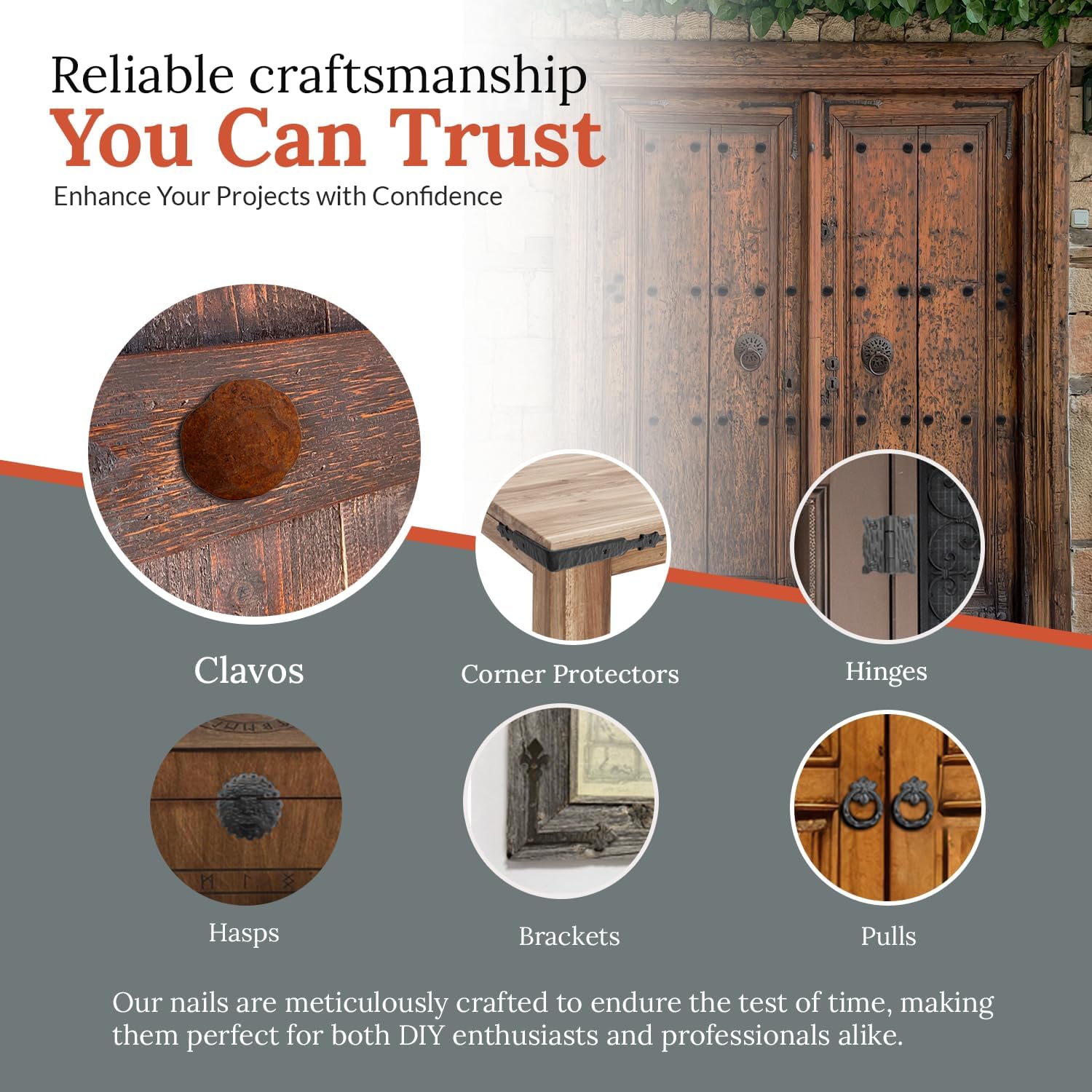 - IDEAL USES: These decorative hardware nails are perfect for a variety of applications, including barn door window shutters, exterior shutters, and faux wood beams. Ideal for upgrading wooden barn doors and farmhouse barn door hardware, they provide both functional and aesthetic enhancements to rustic and traditional projects.