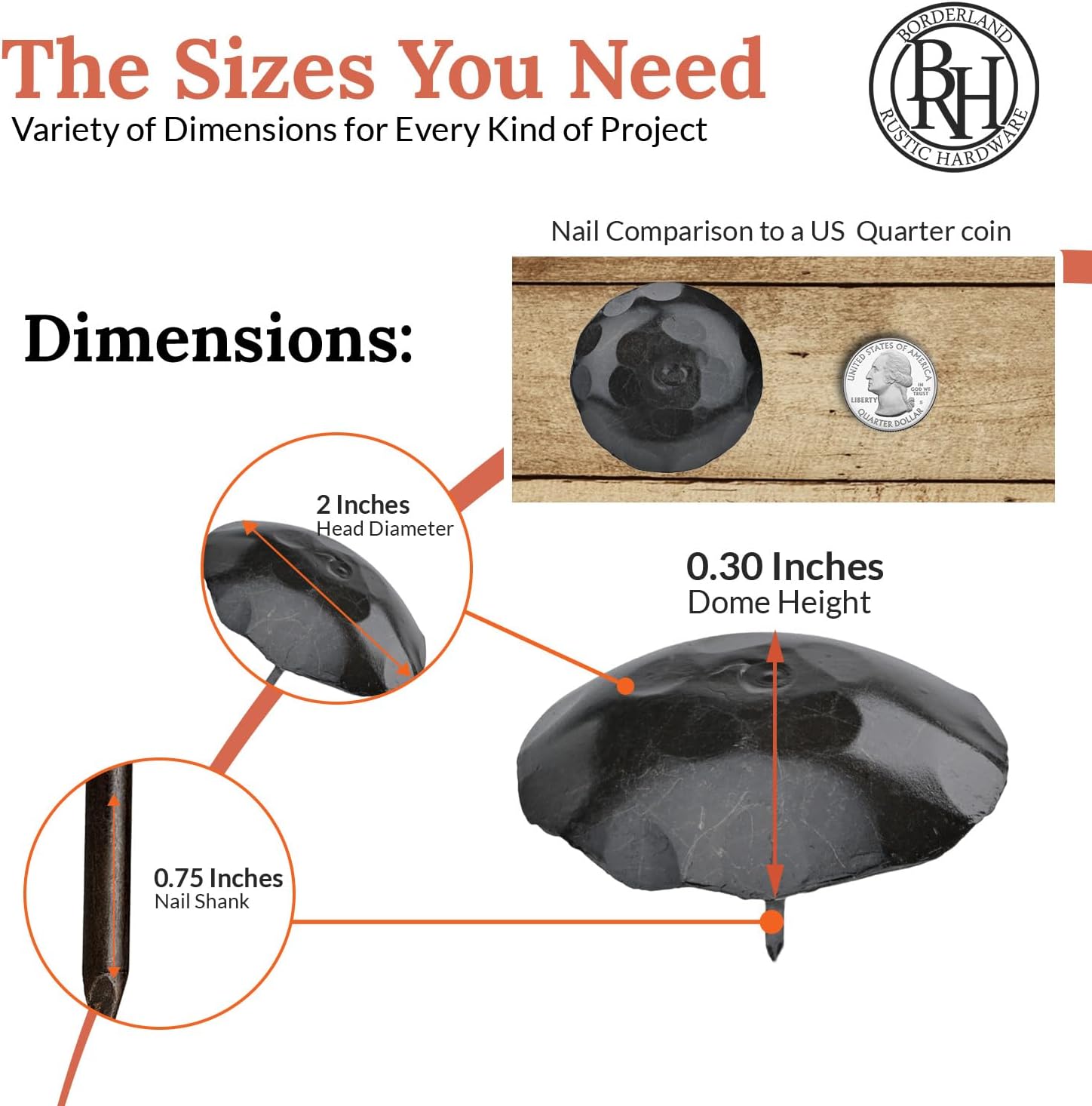 10 Pack 2" Round Head Iron Clavos Decorative Nails – Sealed Unfinished – Handmade Rustic Round Fasteners for Farmhouse Shutters, Faux Wood, Barn Doors, Shutters, Gates – Ornamental Wood Accent