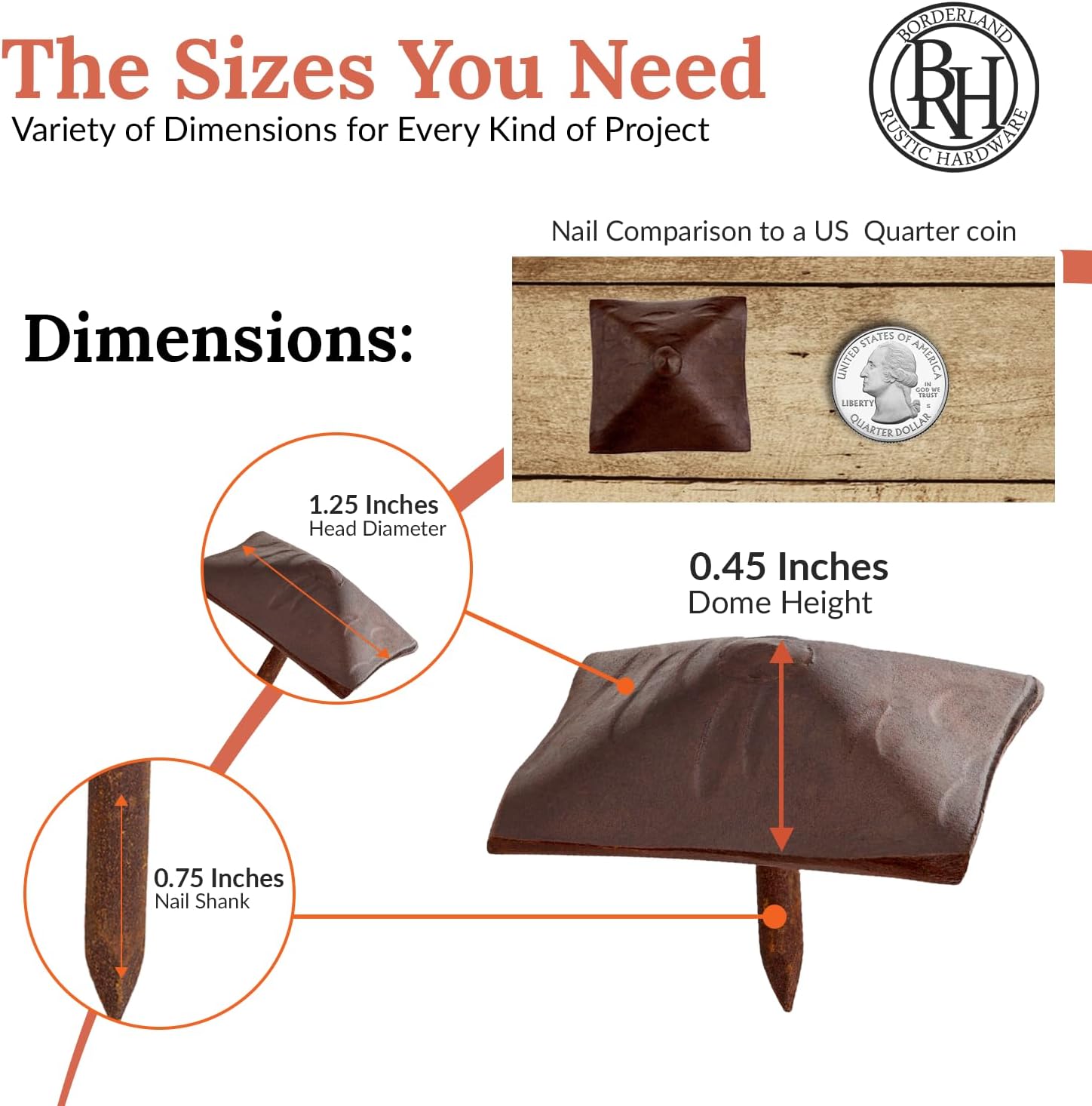 10 Pack 1.25" Square Head Iron Clavos Decorative Nails – Sealed Rusted – Handmade Rustic Square Fasteners for Farmhouse Shutters, Barn Doors, Shutters, and Gates – Ornamental Wood Accent