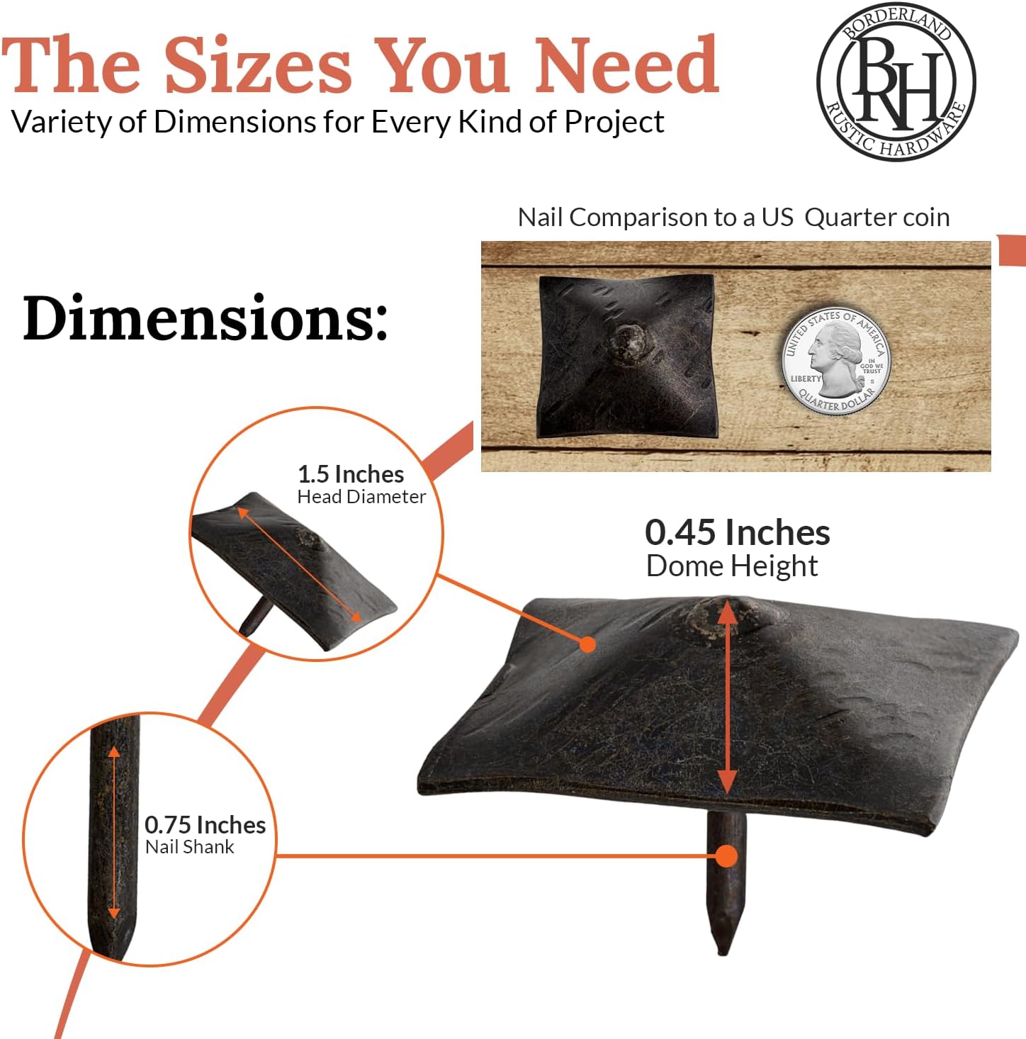 100 Pack 1.5" Square Head Iron Clavos Decorative Nails – Sealed Unfinished – Handmade Rustic Square Fasteners for Farmhouse Shutters, Faux Wood, Barn Doors, and Gates – Ornamental Wood Accent
