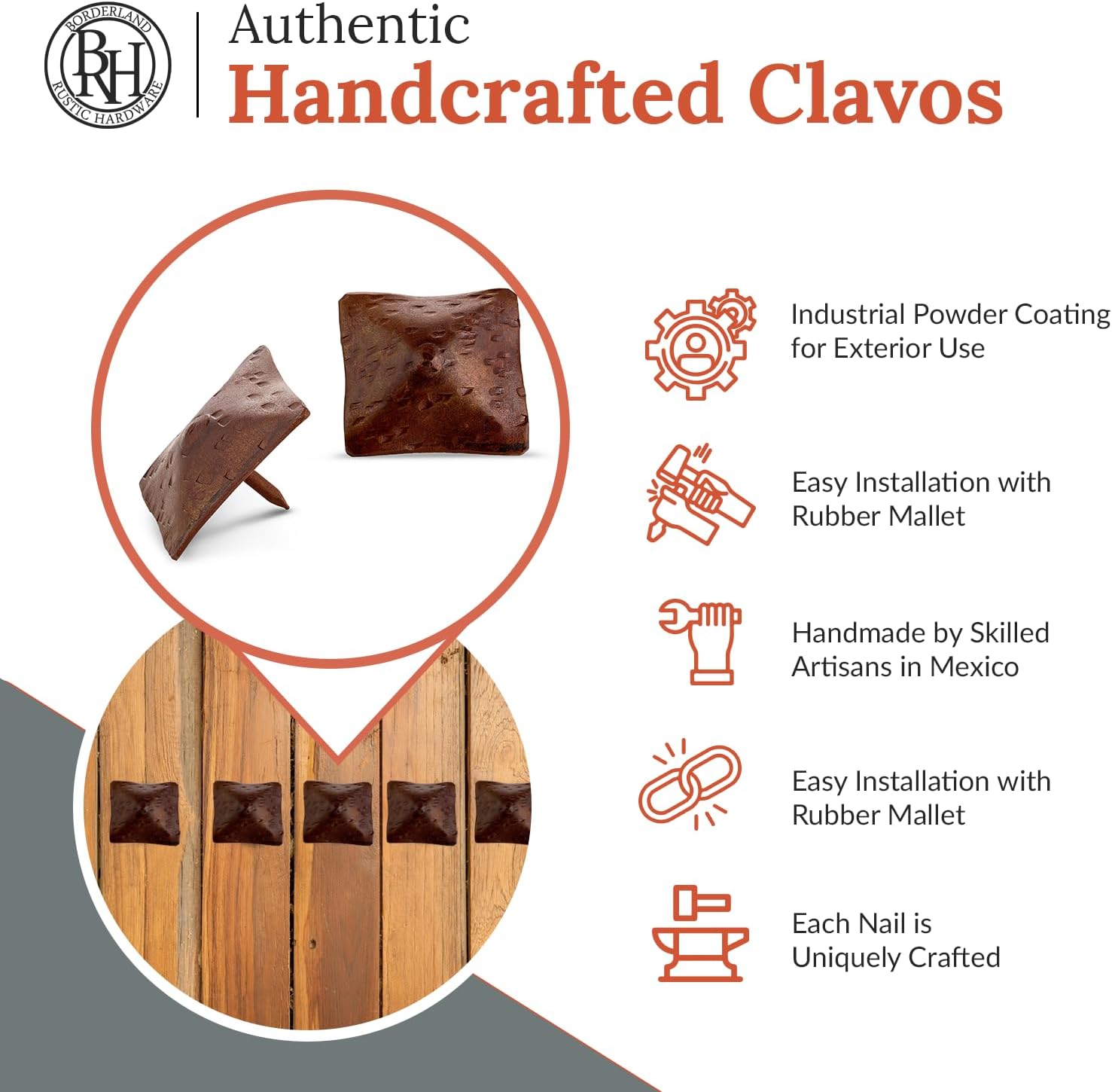 100 Pack 1.5" Square Head Iron Clavos Decorative Nails – Sealed Rusted – Handmade Rustic Square Fasteners for Farmhouse Shutters, Barn Doors, Shutters, and Gates – Ornamental Wood Accent