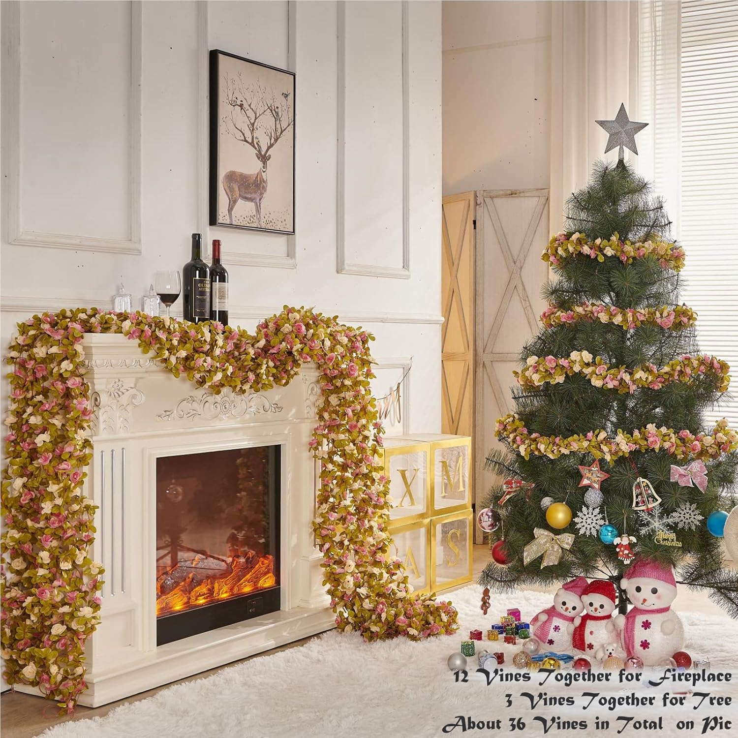 - Multi-use rose vine: With the vibrant color, PONKING fake rose vines are ideal for your wedding, party, vlentines, Christmas, birthday, DIY bouquets, arch home room decor, etc. They could also decorate your space with the string lights(not included). Adding more romantic atmosphere to you all