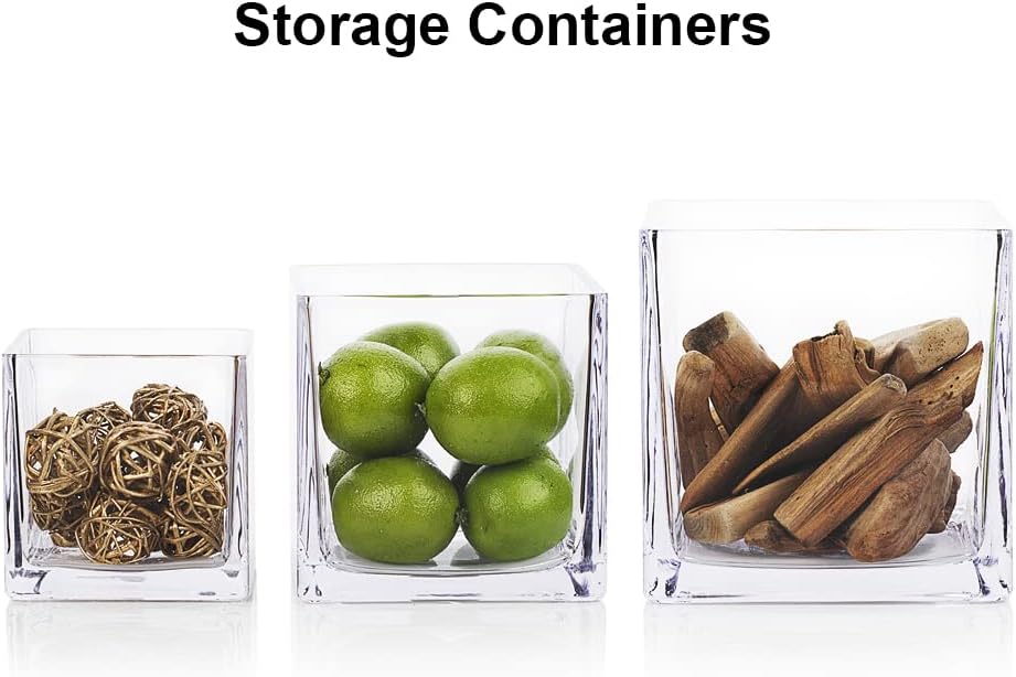 - 【Ideas Decor】Fresh flowers arrangement and candle holders are very popular for this clear square glass vase. Pillar candles and floating candles can be placed inside the glass and filled with water to enhance the atmosphere. You may put acrylic crystal, sand & decorative rocks inside to be fish tanks or aquariums. Succulents vase and planter propagation glass also is a good idea.