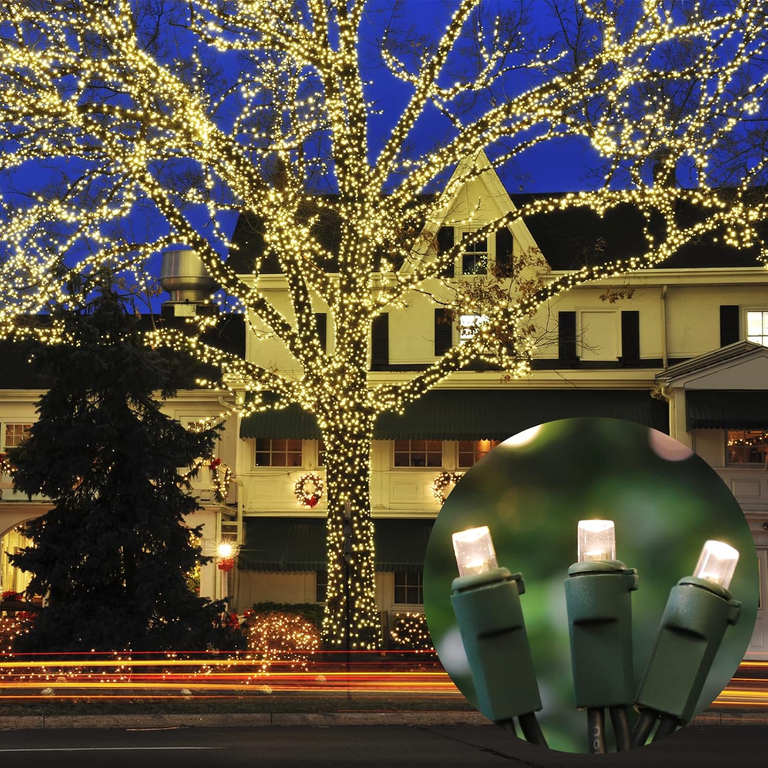 - UL Commercial Grade White Christmas Lights: UL listed; approved for indoor/outdoor, commercial grade 22AVG wire with high tensile strength for outdoor display.