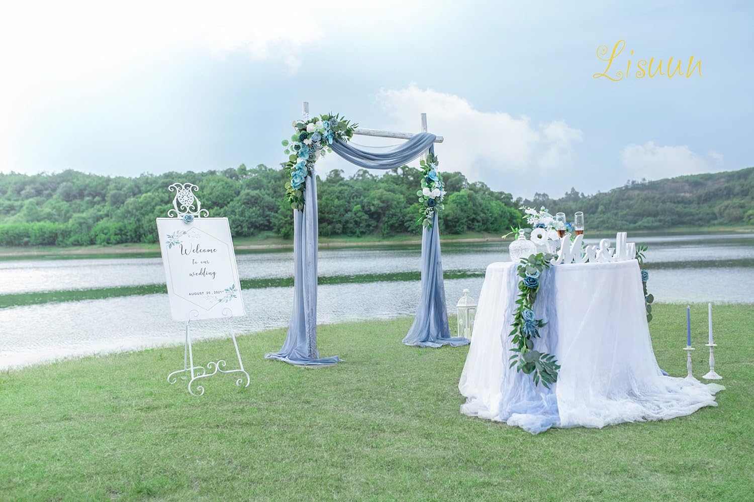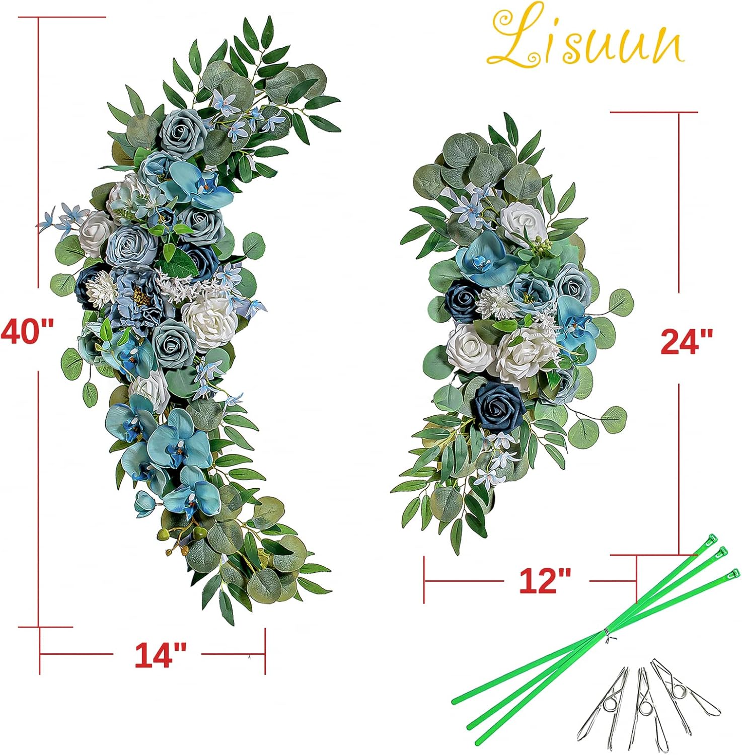 - Enlarged Size:The large flower swag design straightens measures 40" long x 14" wide(100*35cm), small flower tie measures 24" long x 12" wide(60*30cm),the larger size contains more flowers and decorations, let your wedding ceremony more colorful atmosphere.