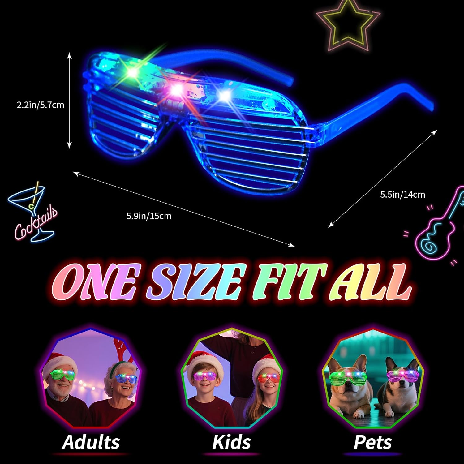 - ✨Vibrant 5-Color Variety & Bulk Pack – Includes 108 LED glow glasses in 6 eye-catching colors (red, green, purple, blue, pink) for group events, party favors, or sharing. Endless style options to match any theme, from birthdays to festivals, ensuring everyone stands out in the crowd.