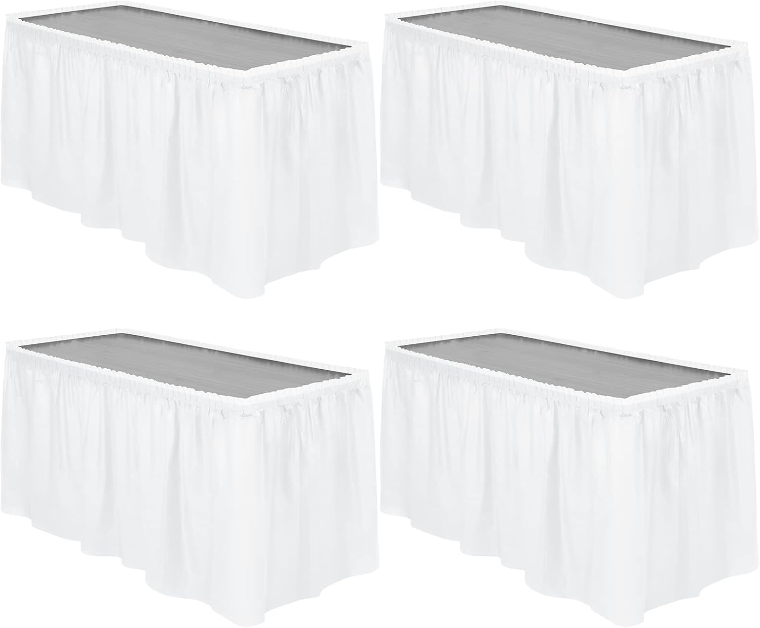 TURSTIN 4 Pieces White Plastic Table Skirts 14 Feet x 29 Inch for Rectangle Tables Fitted Tablecloth Disposable Table Cover for Birthday Party, Events, Banquette Baby Shower