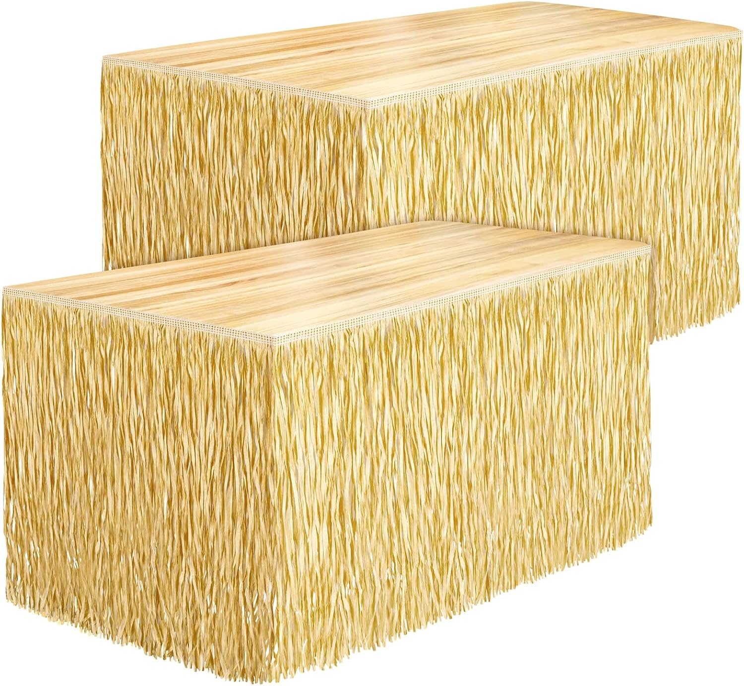 Fovths 2 Packs Luau Grass Table Skirt Fringe Straw Grass Skirt 108 x 30 Inch Hibiscus Hawaiian Table Skirts Rectangle Tropical Luau Party Decorations for Hawaiian Luau Decorations