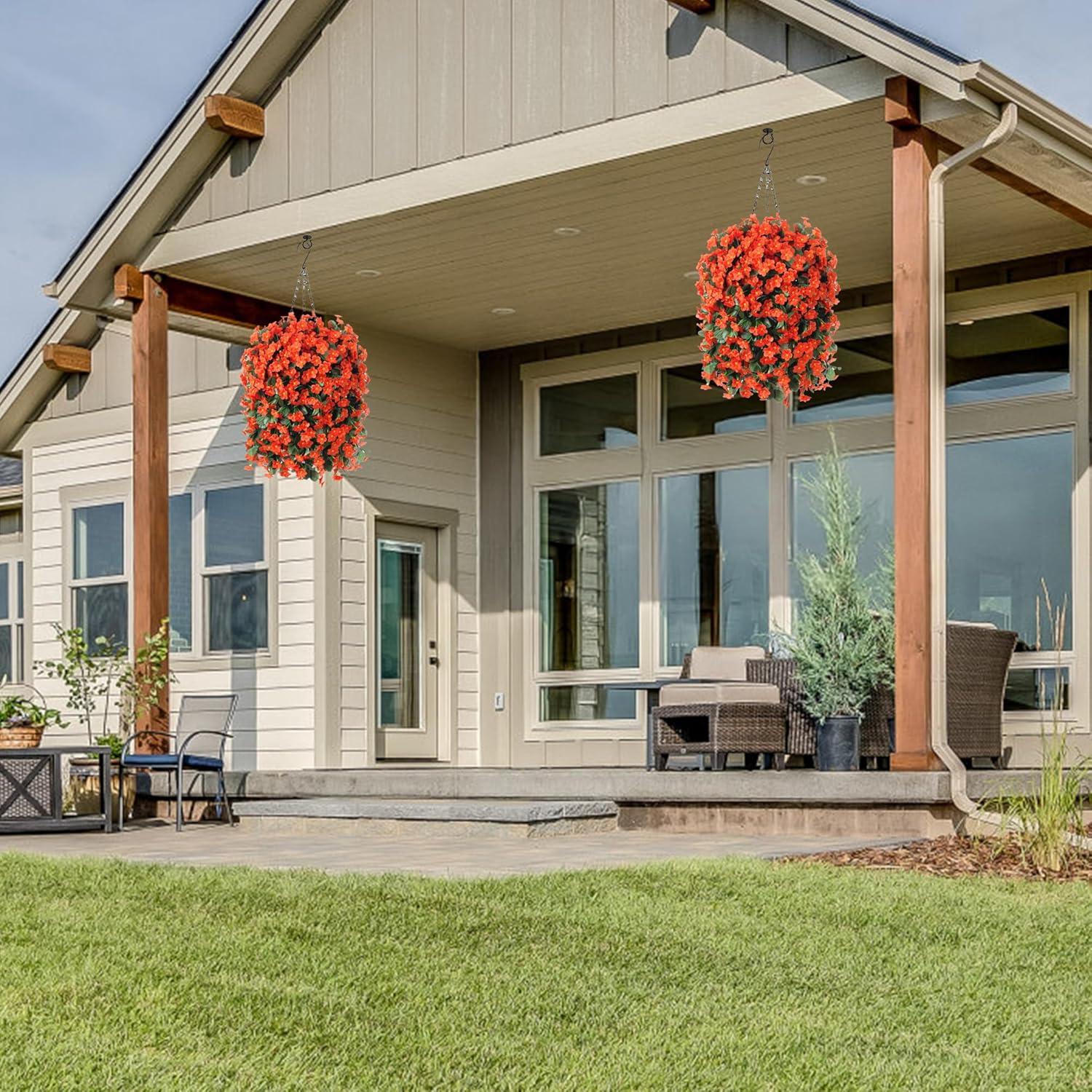 - GOOD QUALITY: The hanging basket and artificial flowers were made of good quality material that donโt require maintenance after assembly. Itโs UV resistance and wonโt fade, sturdy enough for any weather. No watering needs