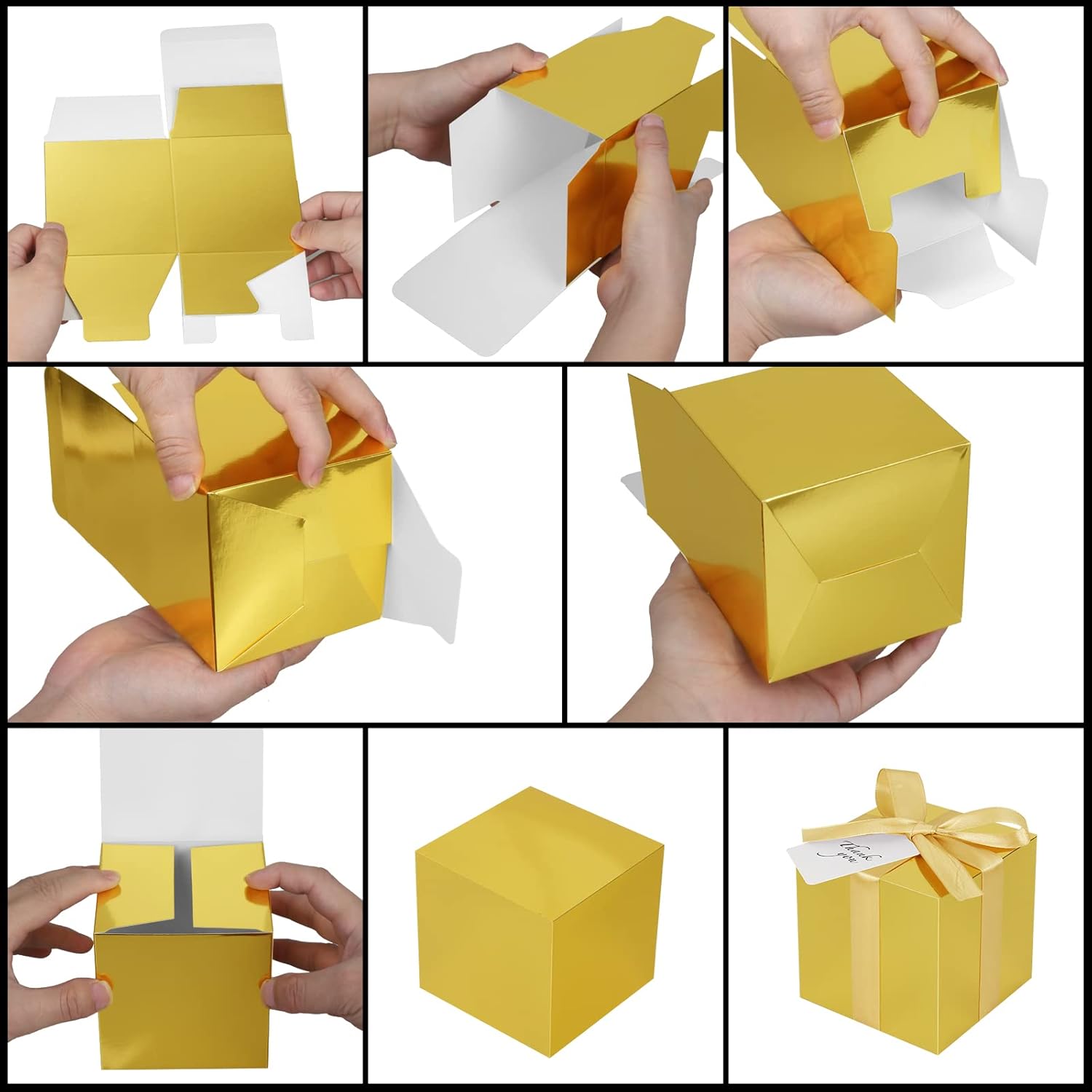 100 Pack Small Gift Boxes, 2x2x2 Inches Favor Boxes Gold Paper Gift Boxes with Lids for Presents, Crafting, Cupcake Boxes, Gifts, Candy Boxes for Wedding Party Bridal Shower Baby Shower Favors
