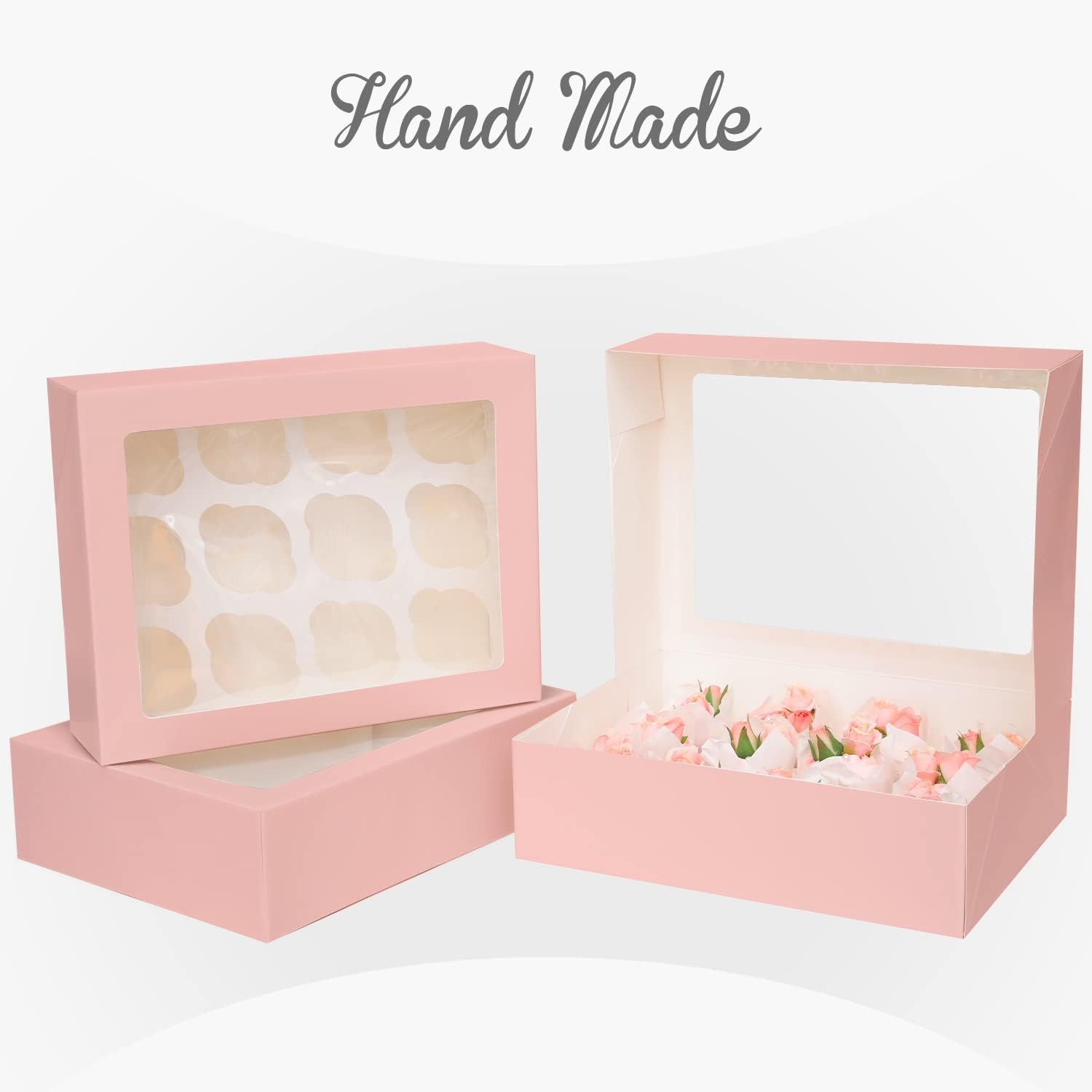 12 Cupcake Containers 20-Packs Pink Cupcake Box Cupcakes Carrier, 12 Cupcake Boxes with Window 13"x10"x3.5"(Auto-pop up)