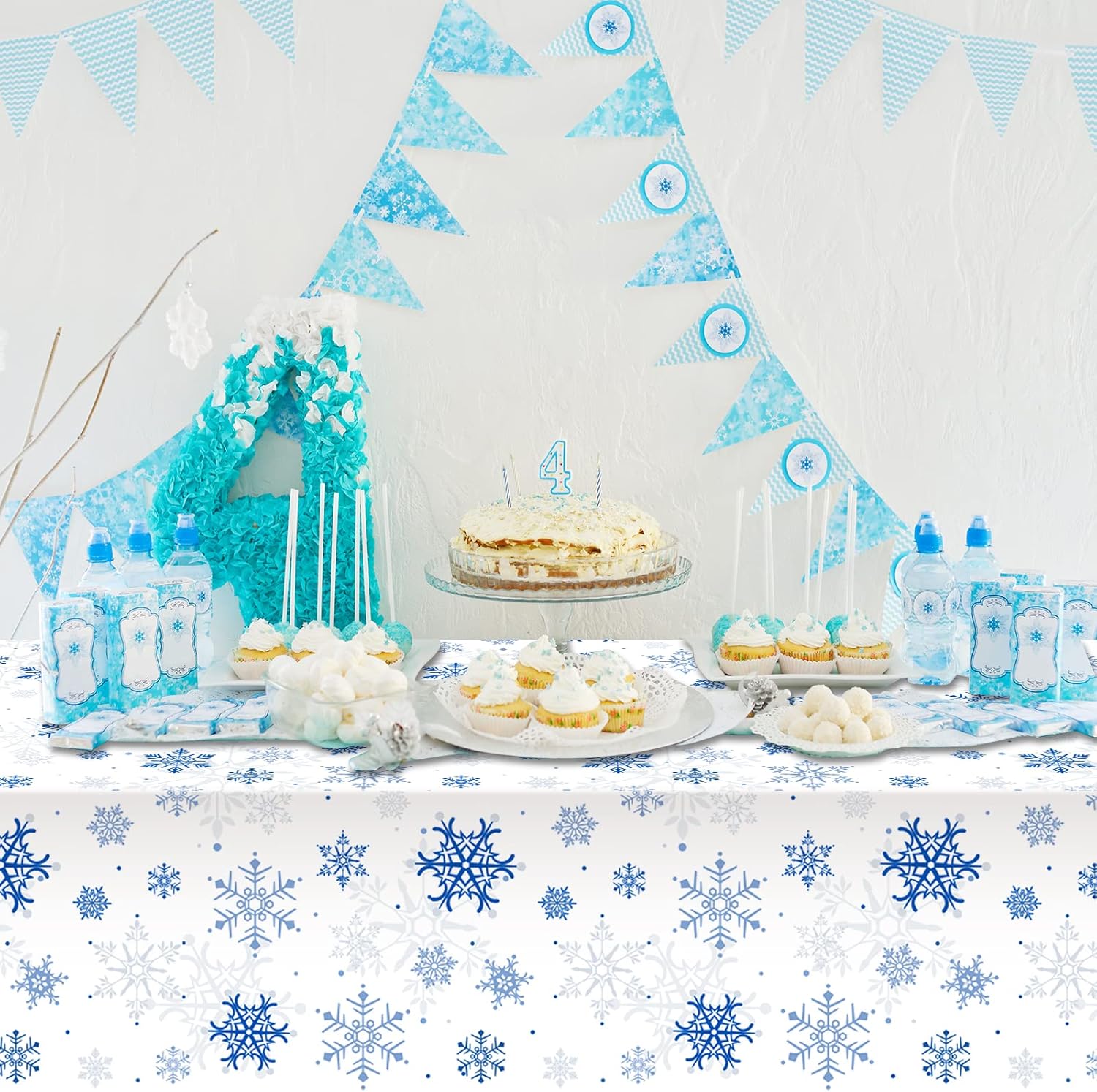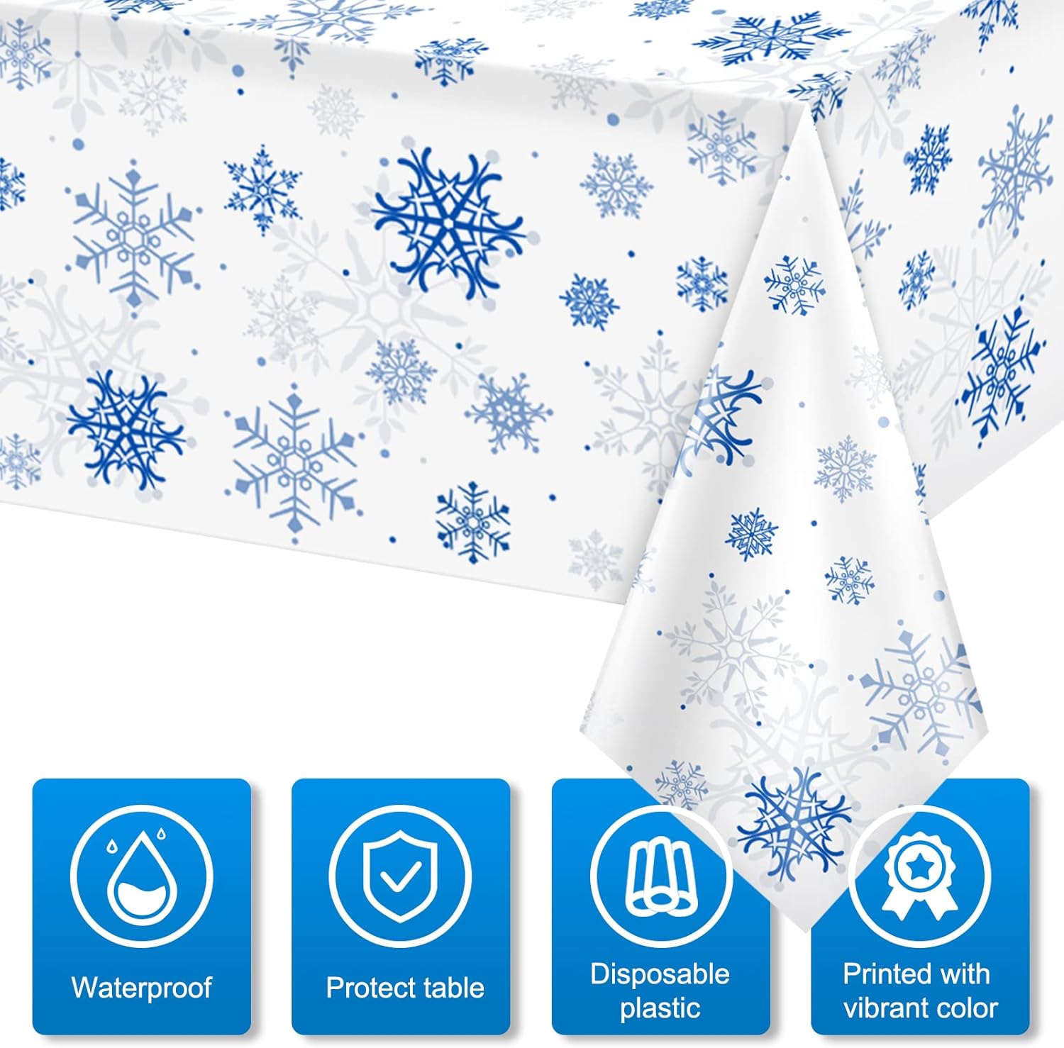 - What will you receive:3 pieces rectangular christmas party tablecloth,all over printed with ice blue snowflake patterns on white backdrop,ideal for decorating your winter holiday and Christmas party supplies and decorations