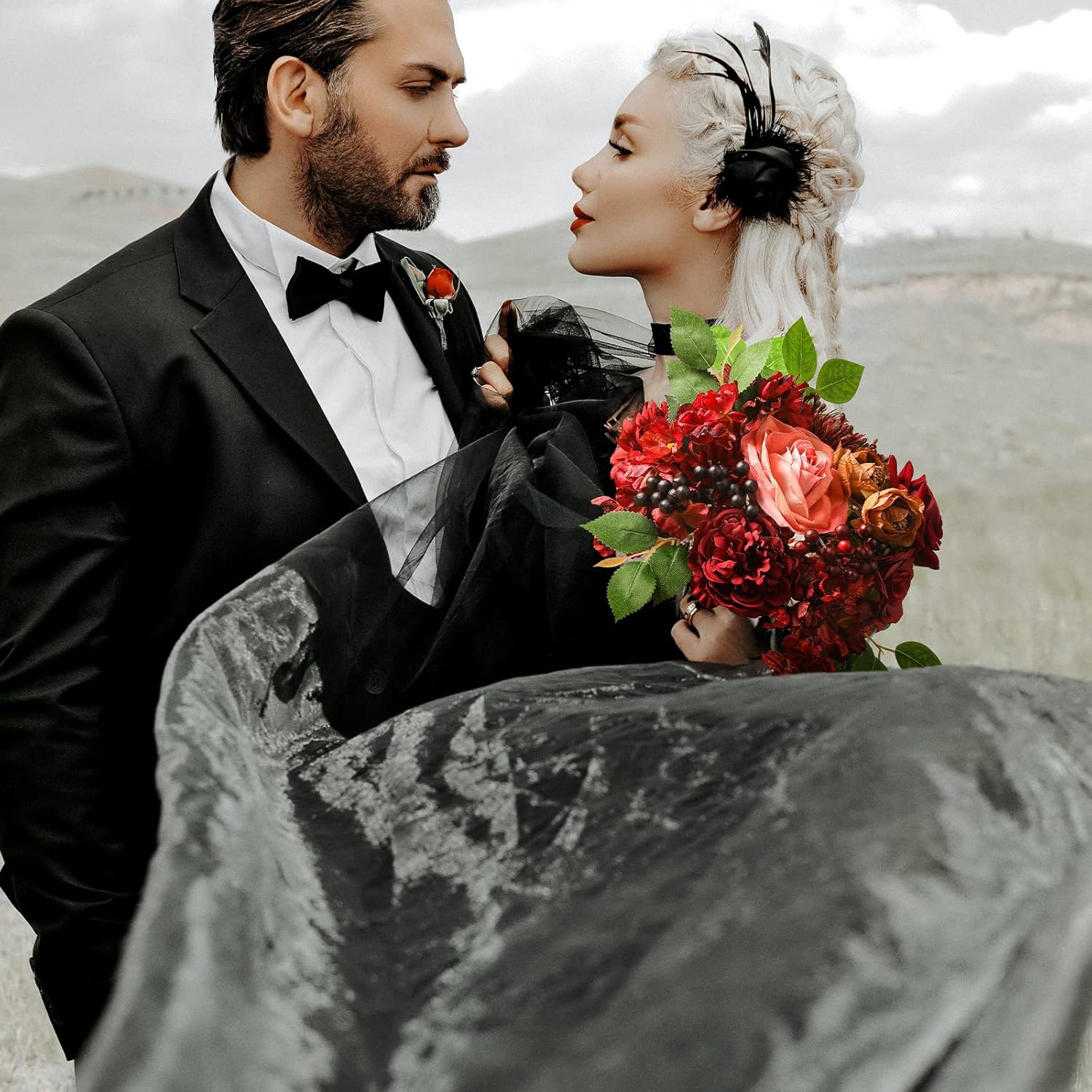 Artificial Flowers Combo Box Set Burgundy Silk Flowers for DIY Wedding Bouquet Arrangements Bridal Shower Party Home Decorations (Mature Burgundy)