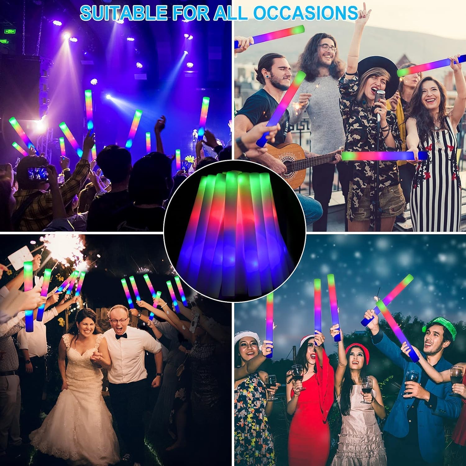 - Application In Multi- Occasions Glow Sticks:These Led Light Up Foam Sticks Are Suitable For All Kinds Of Party Activities, Birthday Party, Gift Pack, Glow Party, Christmas, Halloween, Weddings, Camping Trips, Concerts, Sporting Events, Music Festivals, Bar, Raves Party And More. No Matter What Will Always Surprise You And Add Fun For The Activites.
