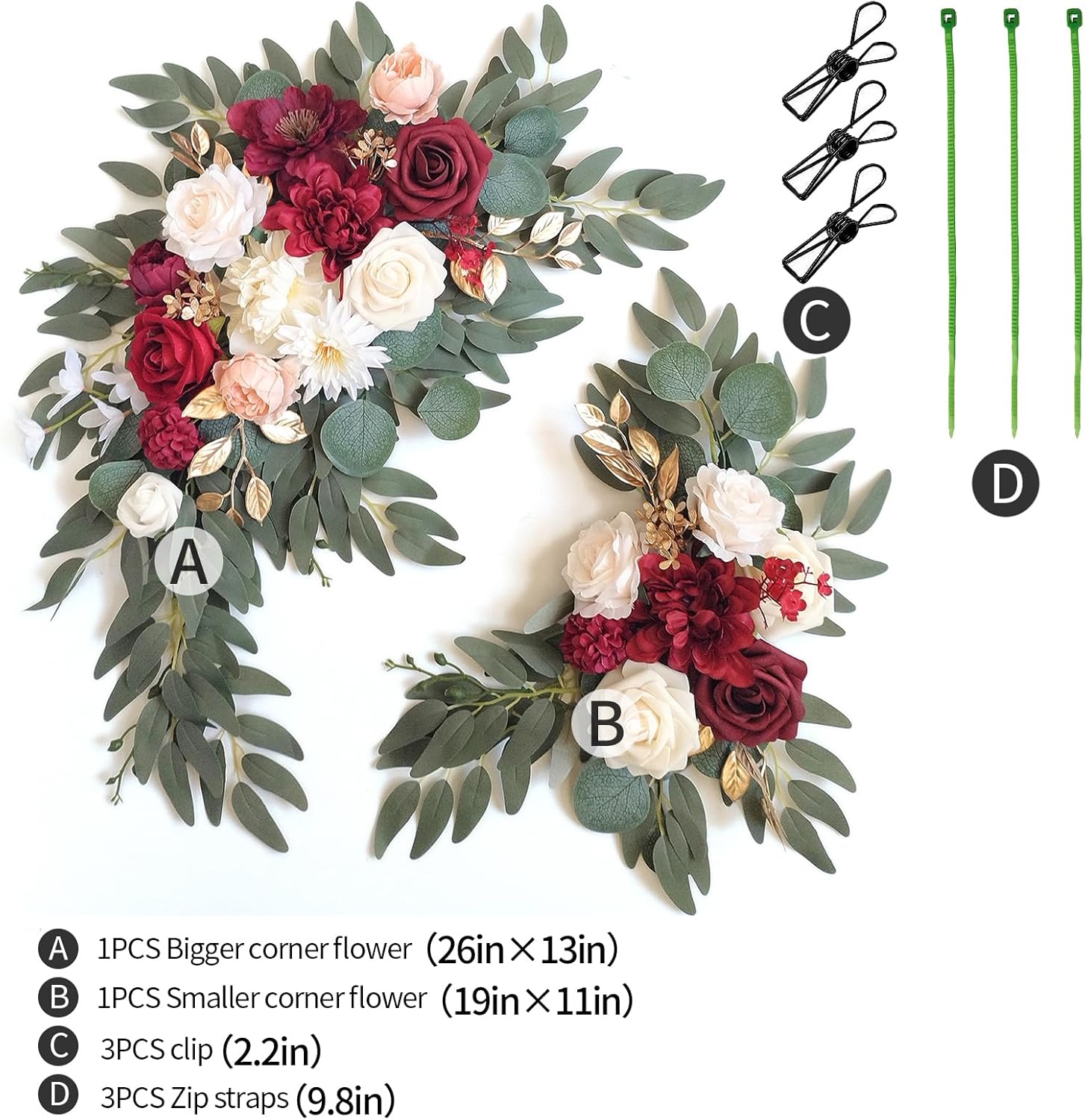 - ☘Material: This wedding flowers for arch is made of silk cloth and foam artificial flowers. They never wilt and look not only beautiful but very lifelike. Designed with a variety of elements for a rich sense of craftsmanship and design, perfect for your wedding arch decoration and welcome sign decoration.