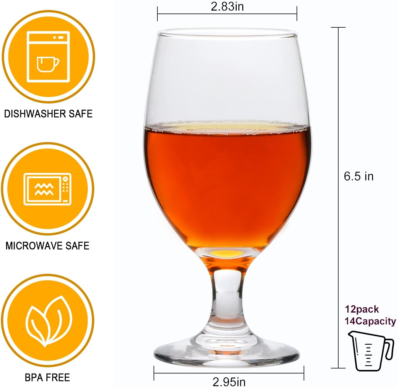 13 OZ Red&White Wine Glasses,Clear Water Goblets Set of 12,Multi-purpose Water Goblet Glasses Dessert Port Short Stemmed Drinking Glass for Party,Wedding,Home Bar