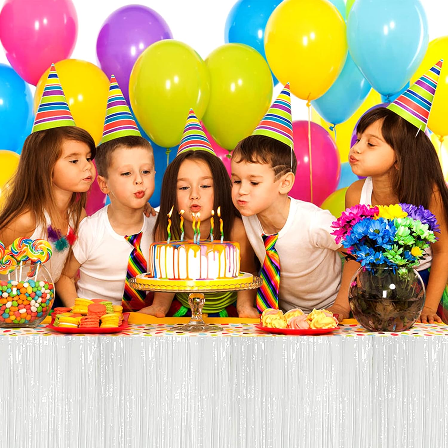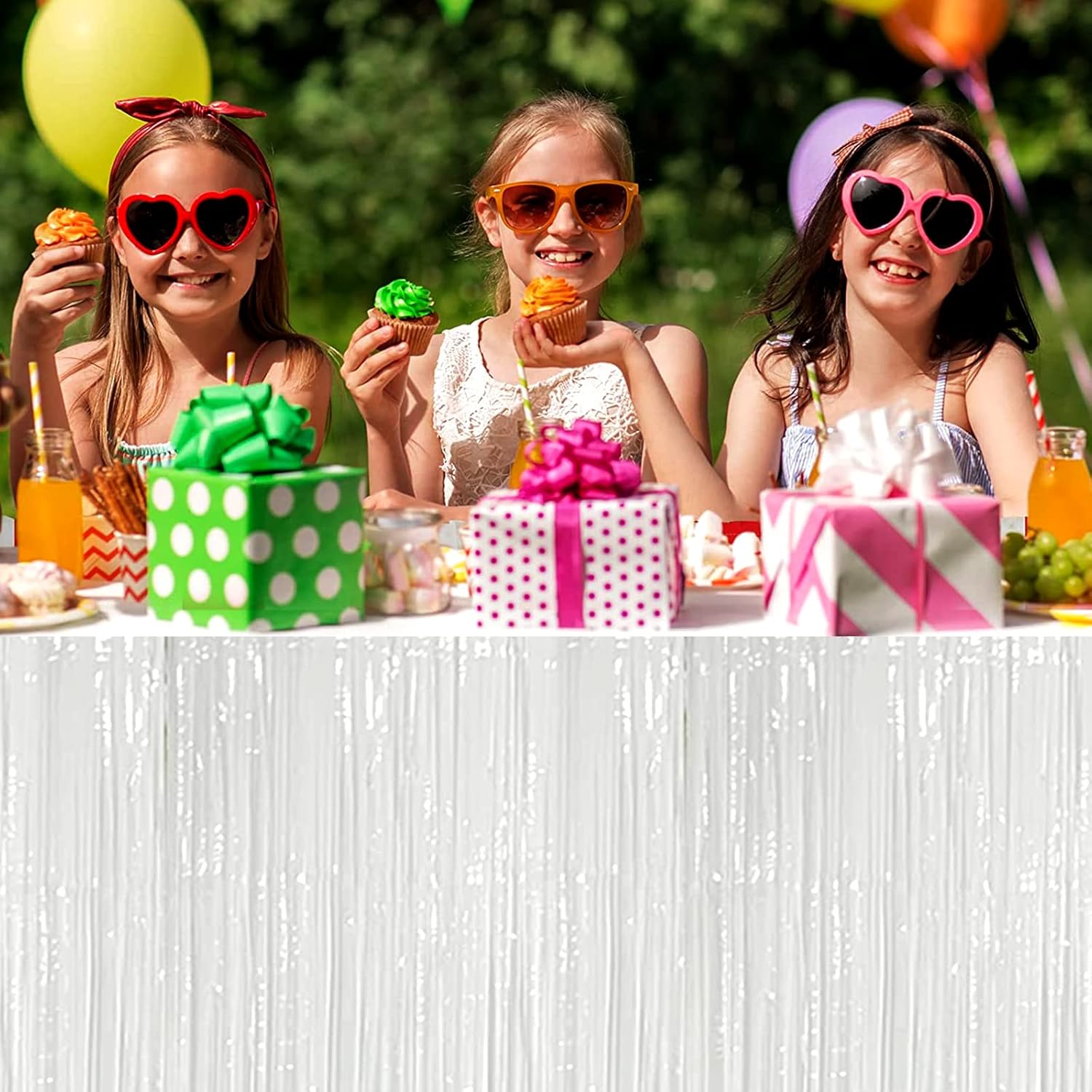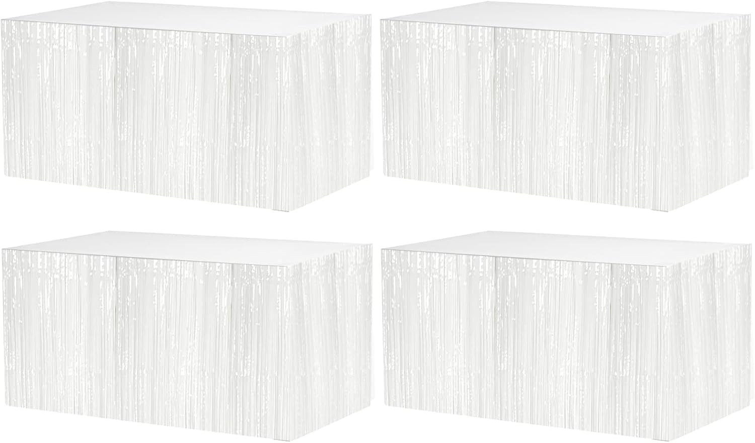 4 Pack 29x108 Inch Metallic Foil Fringe Tinsel Table Skirts for Rectangle Tables Streamer Curtains Backdrop for Wedding, Birthday, Parade Floats, Christmas, Halloween Party Decoration(White)