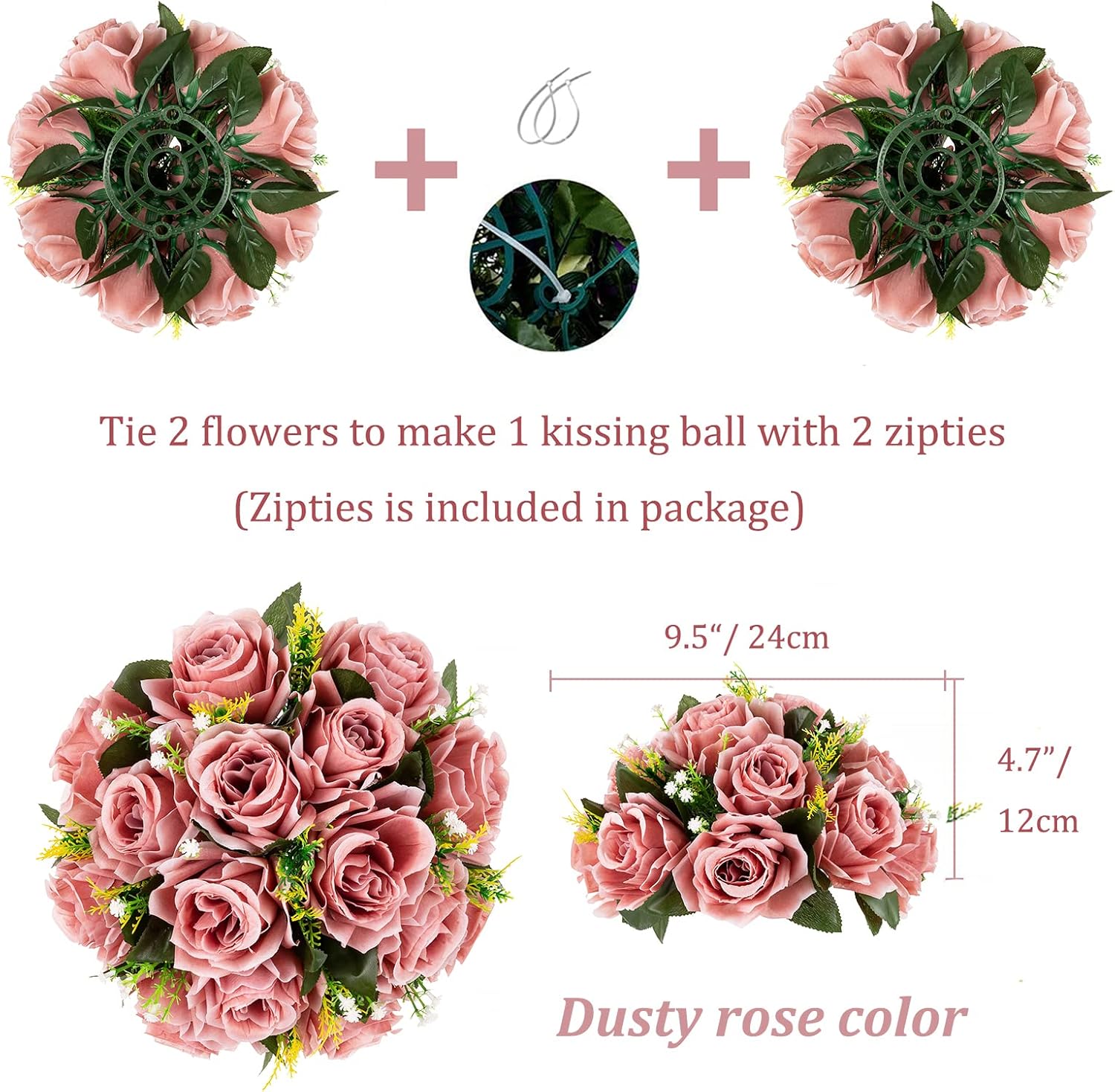 BLOSMON Flower Ball Centerpieces for Wedding: 10 Pcs Dusty Pink Fake Roses Flowers Artificial for Table - Silk Kissing Bouquet Floral Arrangement Center for Home Party Event Decor