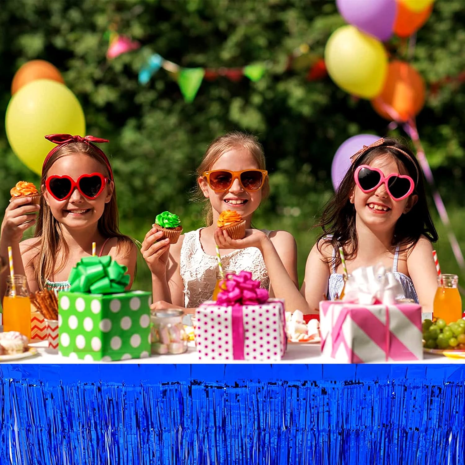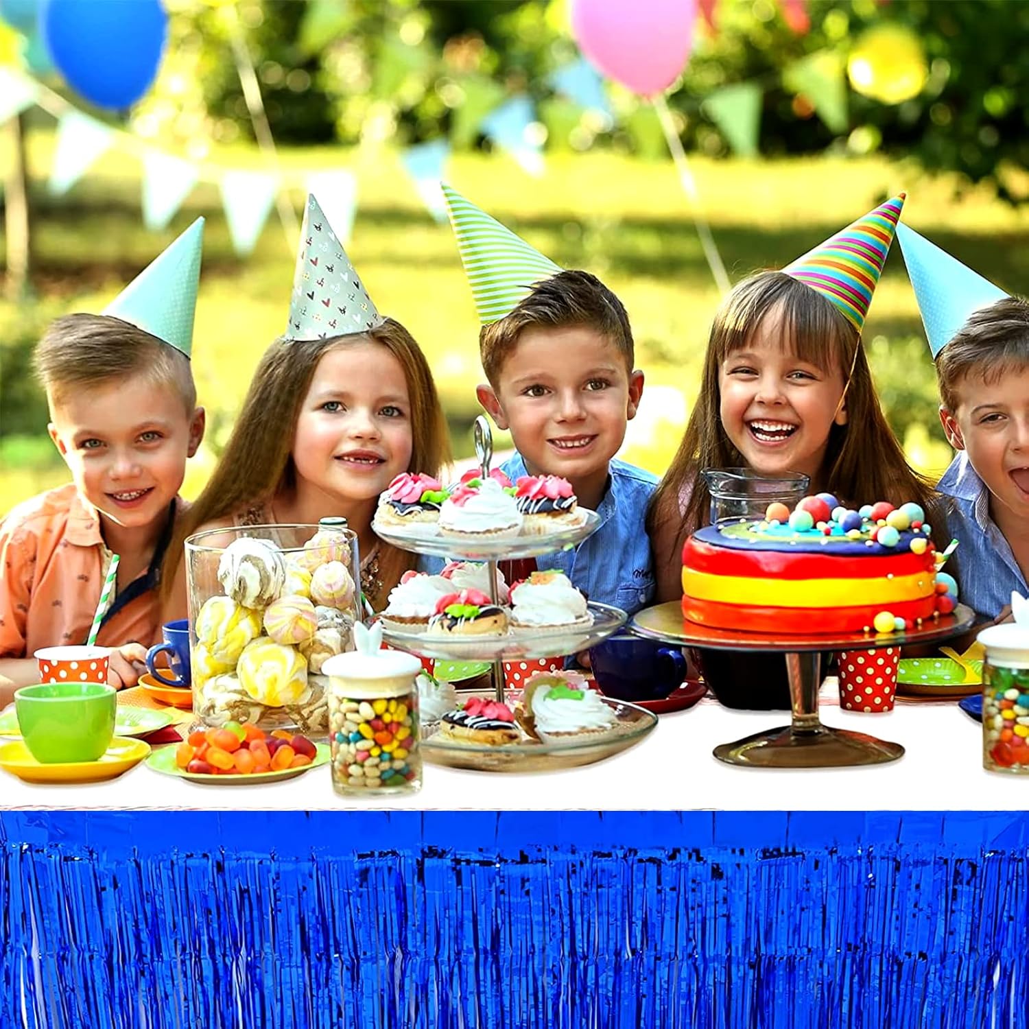 4 Pack 29x108 Inch Metallic Foil Fringe Tinsel Table Skirts for Rectangle Tables Streamer Curtains Backdrop for Wedding, Birthday, Parade Floats, Christmas, Halloween Party Decoration(Blue)