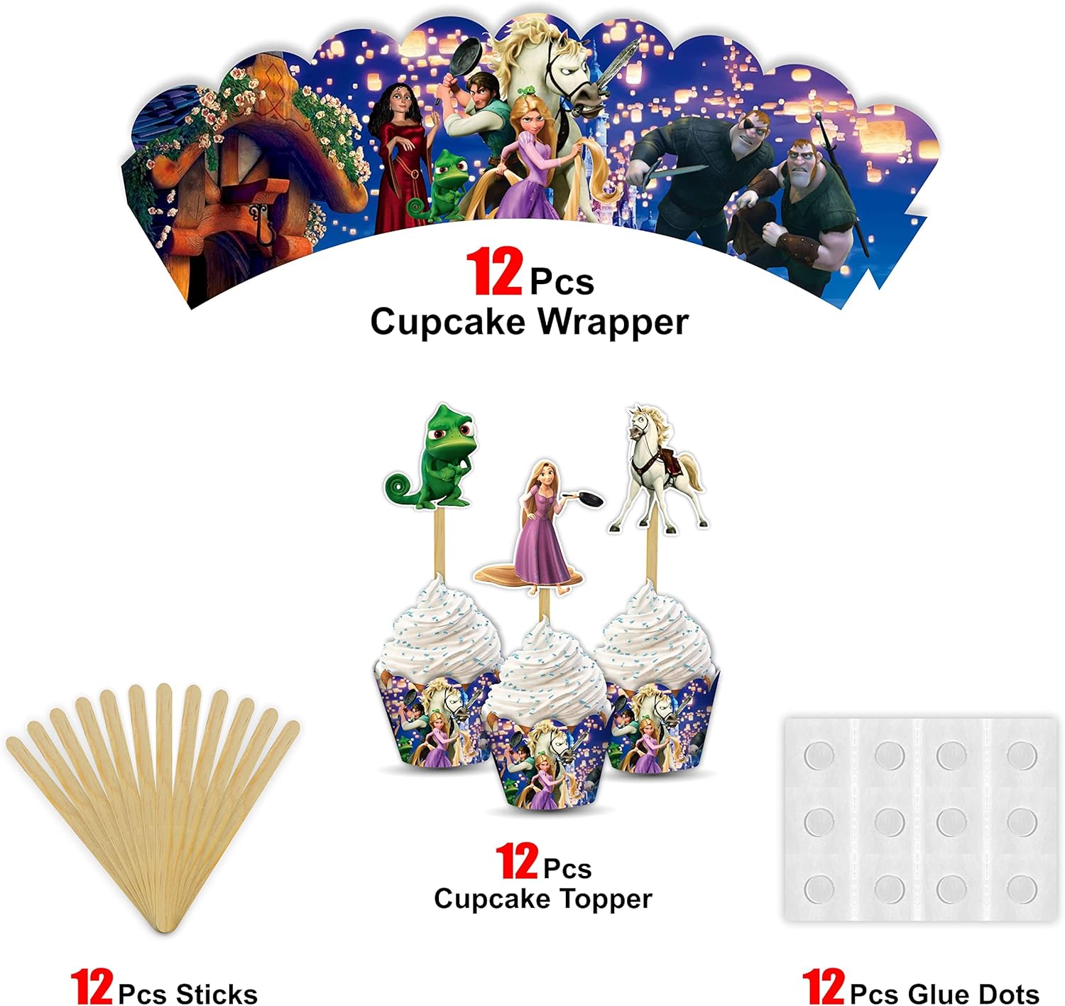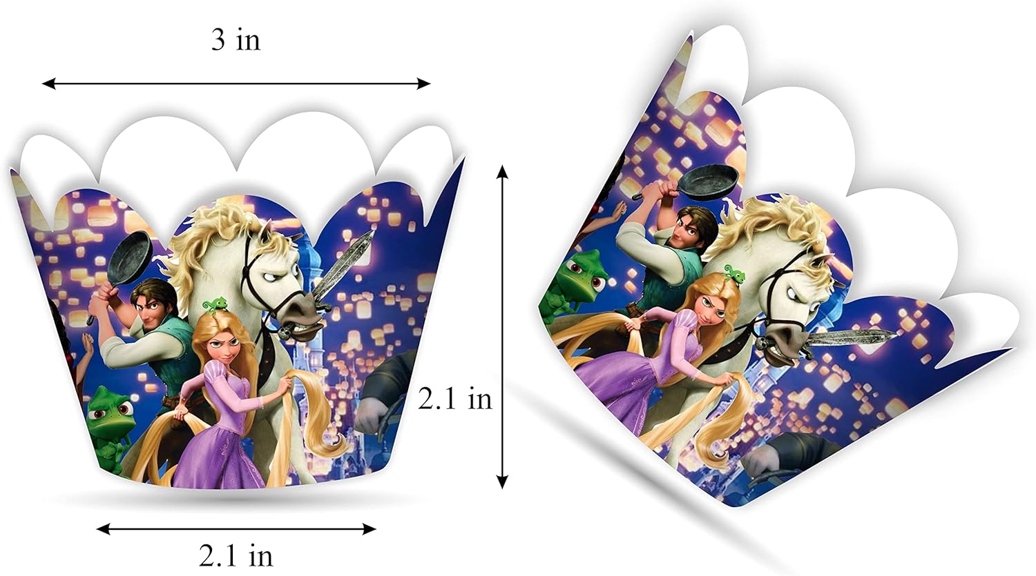 "Rapunzl Cupcake Wrappers โ Princess Theme Cupcake Decoration for Birthday Party & Celebration โ Tangled Inspired Cupcake Holders for Girls Princess Party Supplies, Dessert Table Dรฉcor"