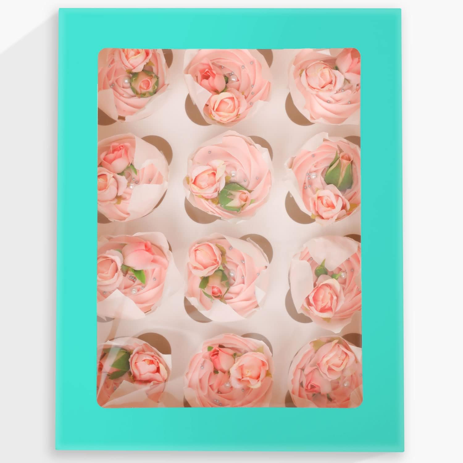 12 Cupcake Containers 10-Packs Cupcake Box Cupcakes Carrier, Mint Blue 12 Cupcake Boxes with Window 13"x10"x3.5"