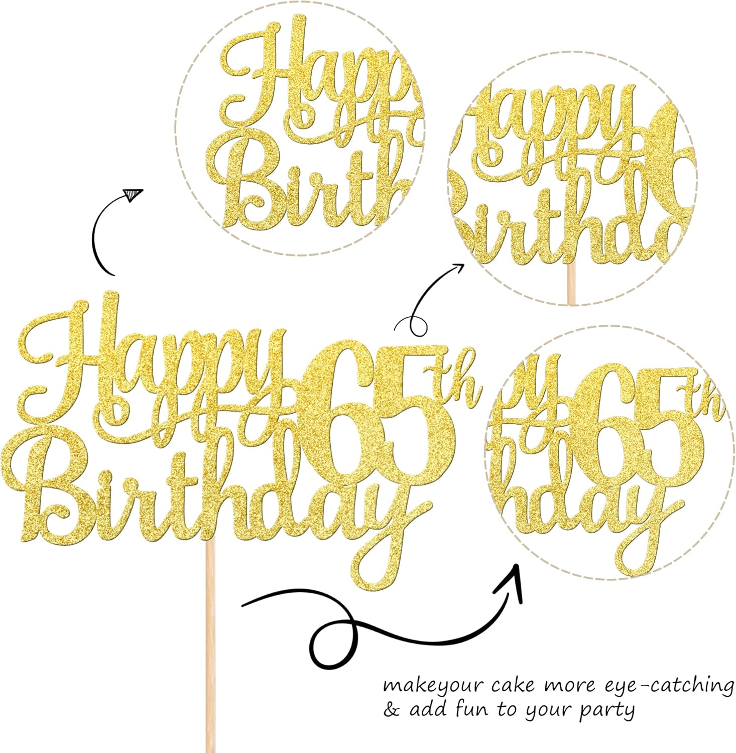 - Wide Usages ! The cake topper is perfect for happy 65th birthday theme party, cheers to 65 years birthday theme party cake decorations, they can make your cake more attractive and bring the fun to your party.You can also apply them for ice cream, fruits, cookies and other desserts.