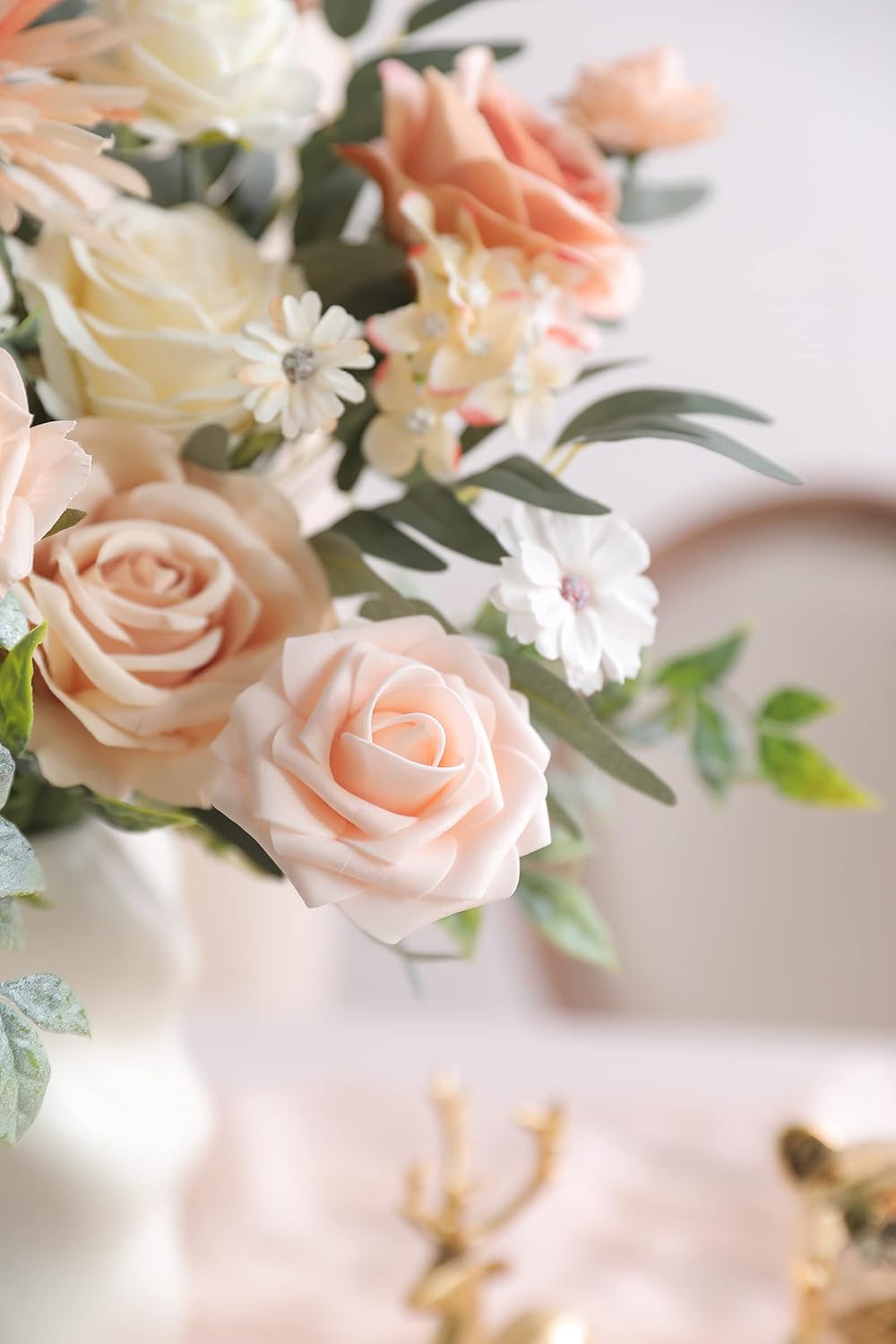 - It's a combination of different silk flowers artificial for decorations and colorful fake flowers bulk for a theme. A great choice to create your flower bouquets bulk of wedding, baby show centerpieces, or any other floral arrangement at your wedding, rose party decorations, home. Make your favourable DIY flower decor as you want. This artificial flower heads are not fixed or bouqueted, they are easy to make DIY flower craft. Perfectly matching with other foam roses for crafts, faux flowers, greeneries, flower swag, fake vines, artificial roses flowers, eucalyptus, flower garland, flower wreath, cake flowers, ect. Let your wedding or home decor as a stunning décor