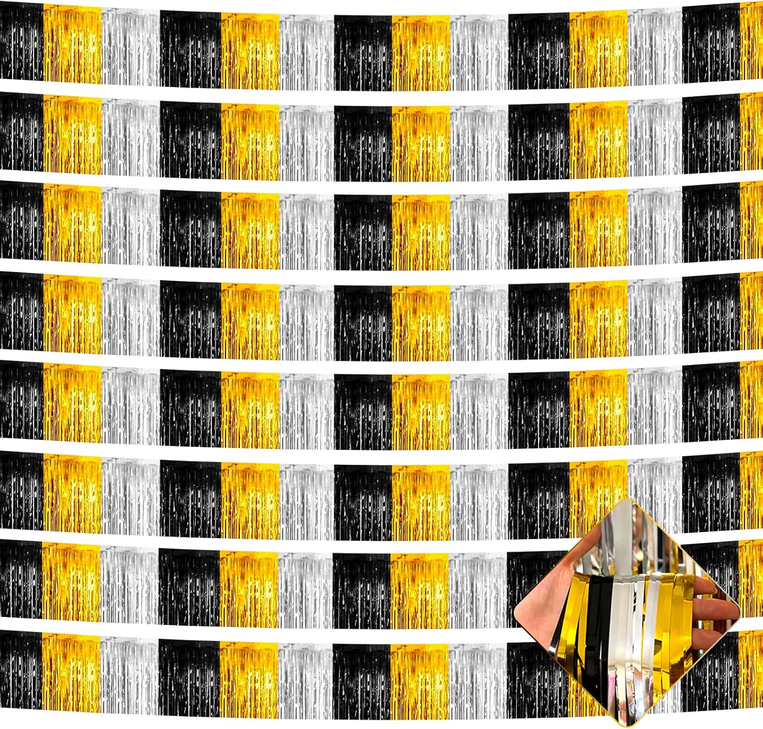 10 Pack 10 Feet Foil Fringe Garland Metallic Tinsel Streamers Banner Wall Hanging Backdrop for Parade Floats, Notorious One Birthday Roaring 20s Graduation Party Decorations(Black Gold Silver)