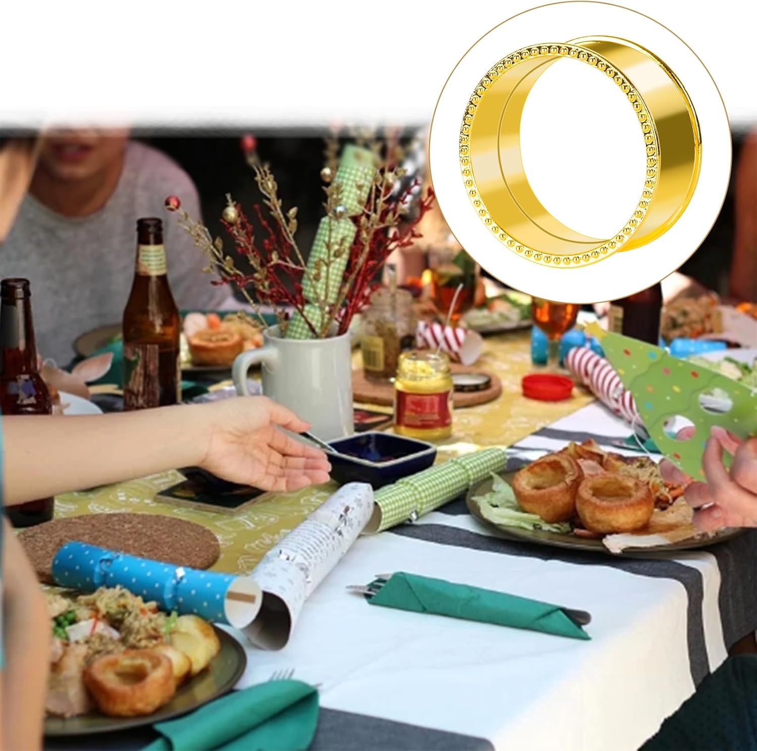 12 Pcs Stainless Steel Bead Side Napkin Rings Delicate Serviette Buckles (Gold)