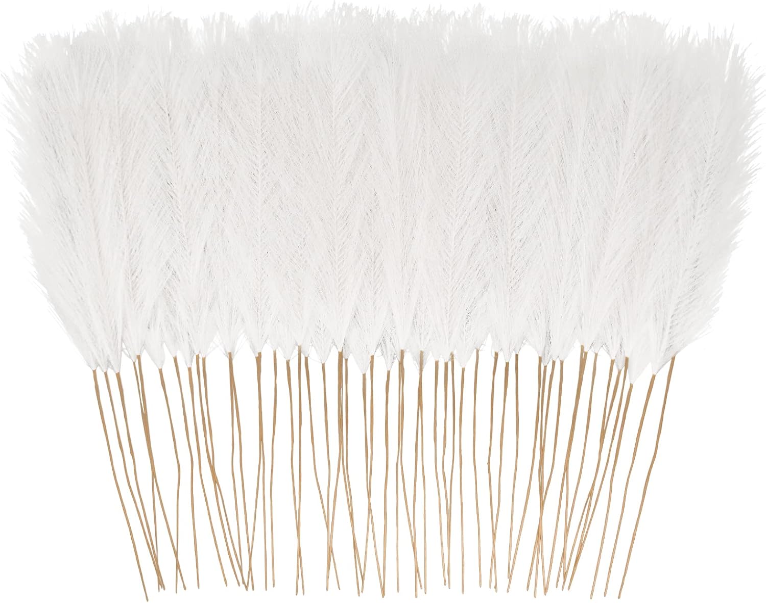 - White Pampas Grass Decor: You will get a pack of 50pcs artificial pampass grass, each stem 21.6β, and the heads of each stem is designed you can fluff them up for a fuller look, create a chic minimalist, or Bohemian modern display to complement your existing home arrangement