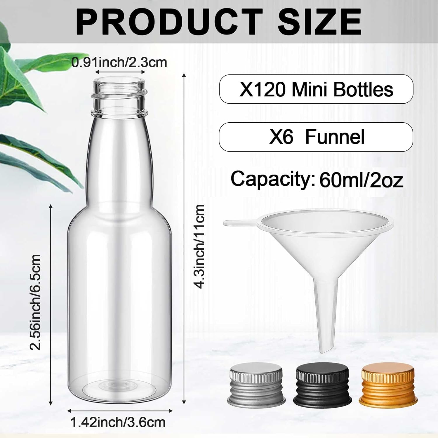 - Rich in Quantity: you will receive 120 pieces of mini liquor bottles with cap and 6 pieces of funnels, enough quantity and good combinations to meet your needs and replacements, and you can also share some with your friends and family members