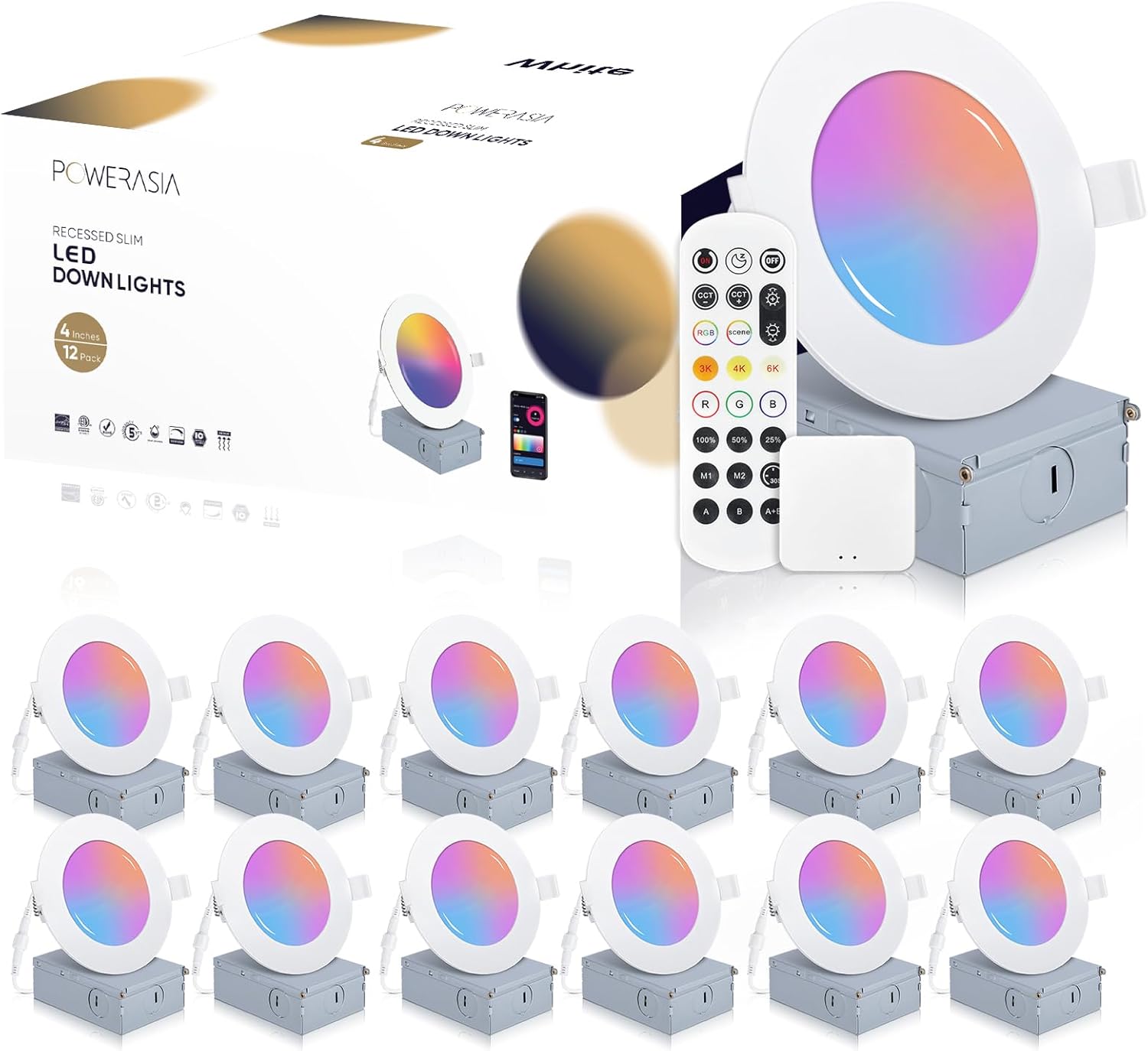 - 【Remote Control】 Our smart recessed lighting 4 inch come with remote controls, which have functions such as group control, color temperature, brightness, mode, etc., so you can control these lights at home or without WiFi.