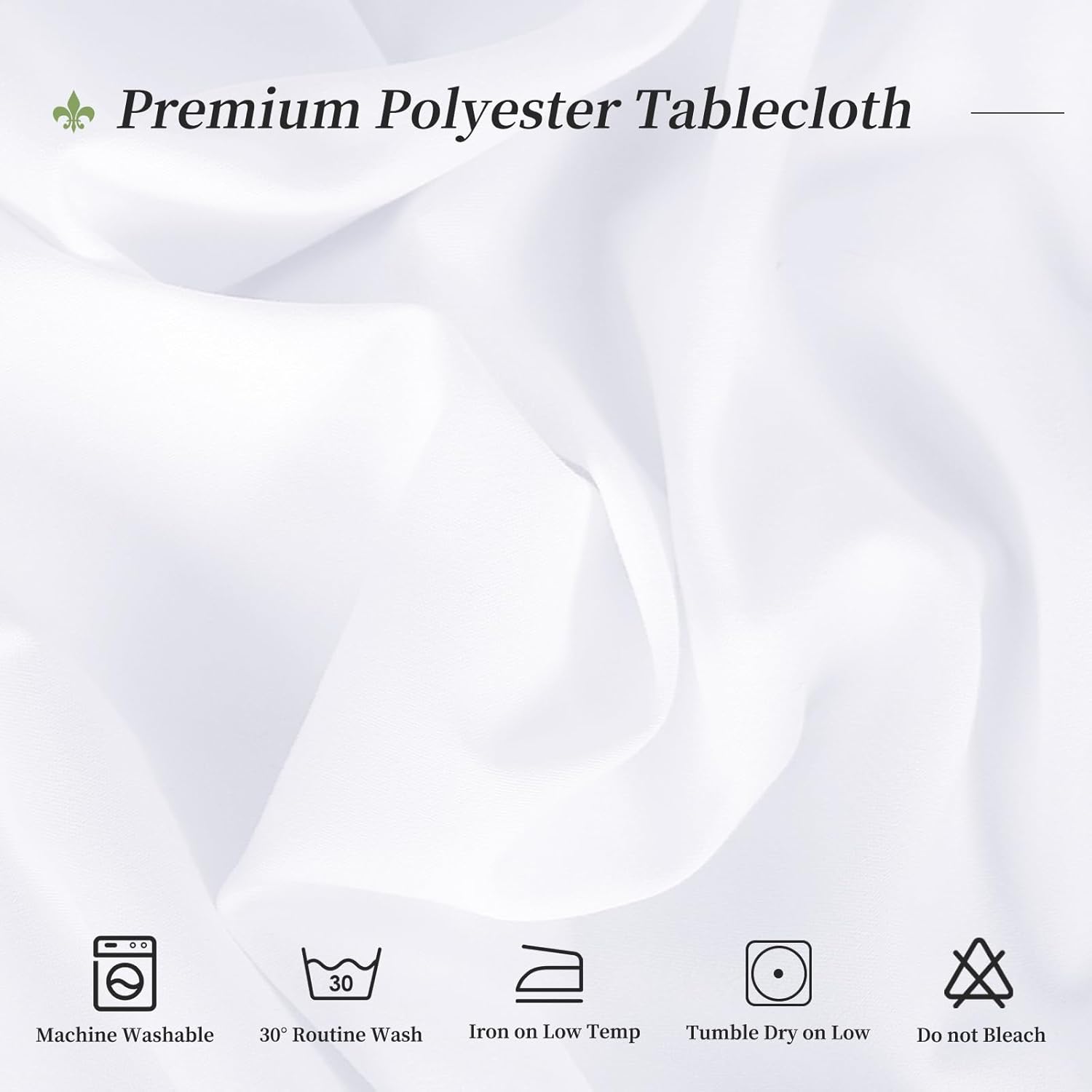 - 【Exquisite Workmanship】This tablecloth is a 1-piece seamless premium table cloth. Every part of the tablecloths is flat and smooth. The white round table cover are designed with folded borders and fine stitching to ensure an elegant look and no loose threads. Our color-fast dyes stay vibrant and true, and will not fade or transfer during washing or use. The party round polyester tablecloth makes your dining table neat, elegant and stylish.