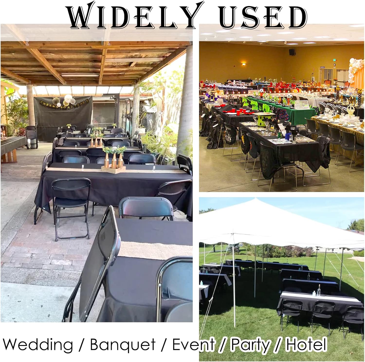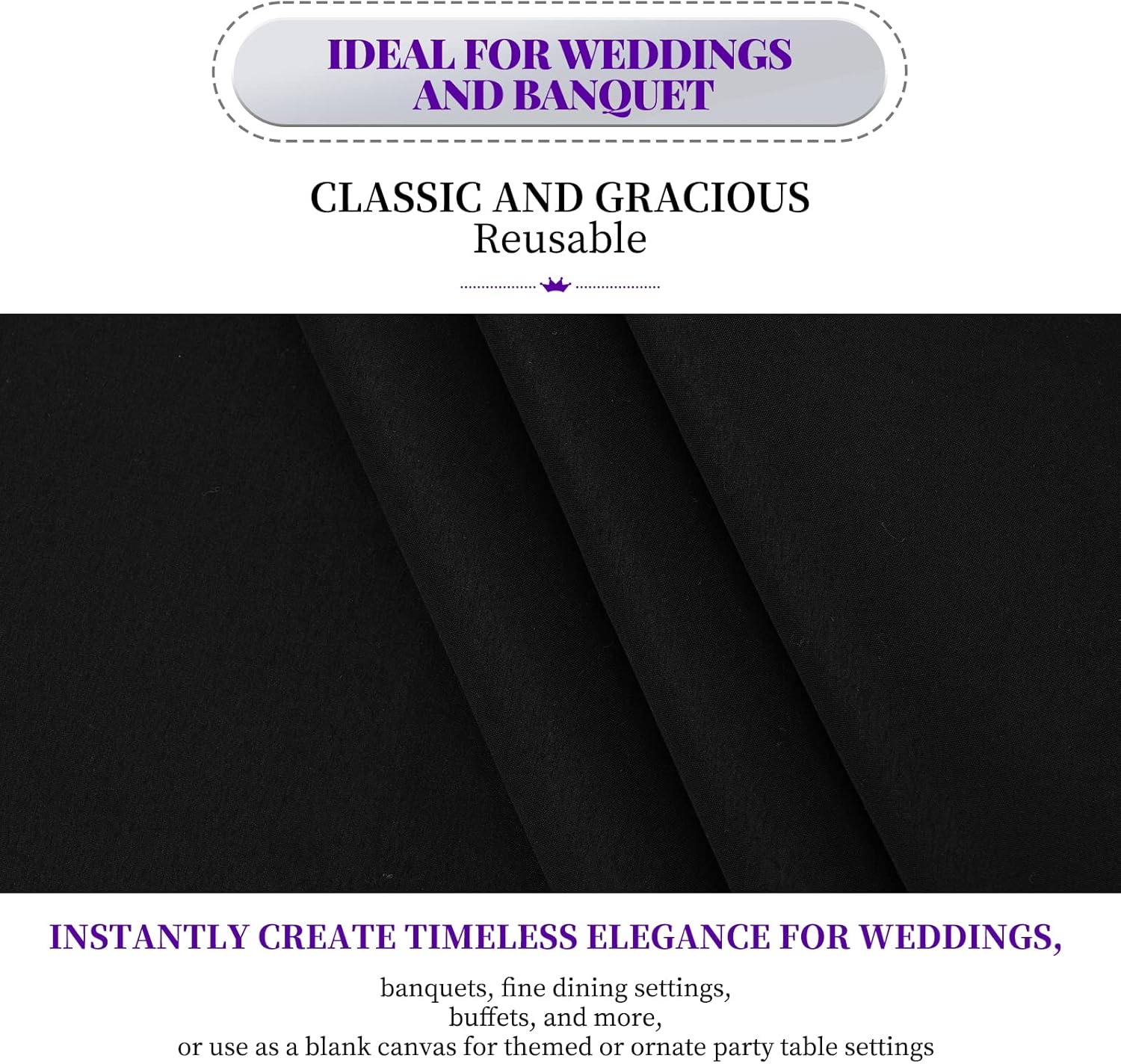- š„ćDecorative Table CoversćPolyester is an efficient and economical choice for a tablecloth, it's extremely versatile and can be dressed up for an ultimate glam event, dressed down for a rustic vintage both wedding, and can even be used as a clean and modern look for a minimalist event. Classic colors to meet your different subject of events, like weddings, banquets, birthday or dinner party, bridal or baby shower, candy buffet,and other everyday functional or decorative use.